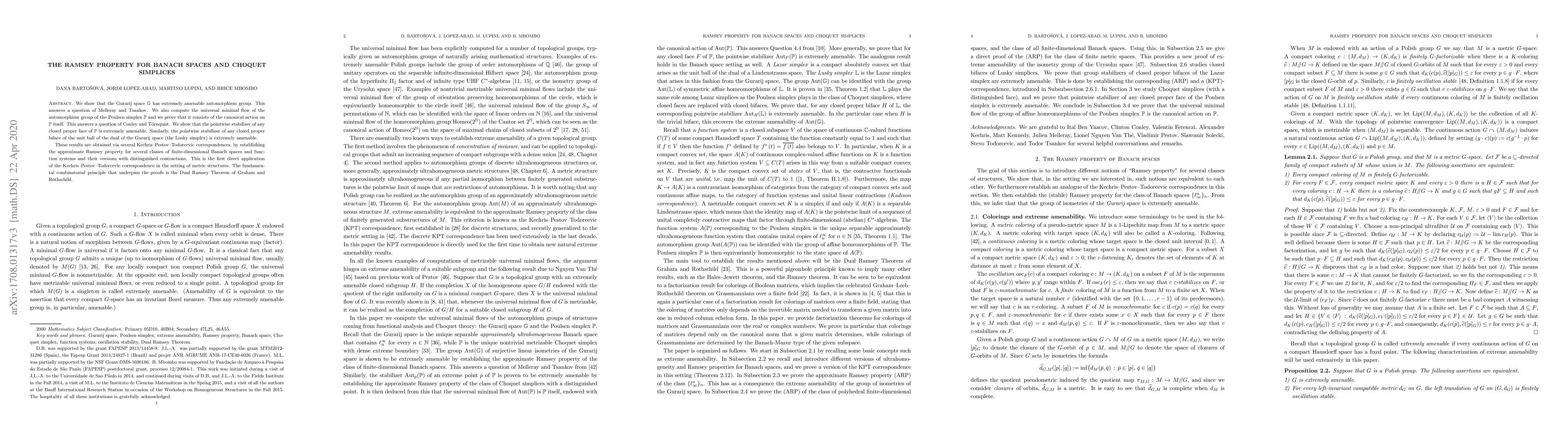 We show that the Gurarij space $\mathbb{G}$ has extremely amenable automorphism group. This answers a question of Melleray and Tsankov. We also compute the universal minimal flow of the automorphism group of the Poulsen simplex $\mathbb{P}$ and we prove that it consists of the canonical action on $\mathbb{P}$ itself. This answers a question of Conley and T\"{o}rnquist. We show that the pointwise stabilizer of any closed proper face of $\mathbb{P}$ is extremely amenable. Similarly, the pointwise stabilizer of any closed proper biface of the unit ball of the dual of the Gurarij space (the Lusky simplex) is extremely amenable. These results are obtained via several Kechris-Pestov-Todorcevic correspondences, by establishing the approximate Ramsey property for several classes of finite-dimensional Banach spaces and function systems and their versions with distinguished contractions. This is the first direct application of the Kechris-Pestov-Todorcevic correspondence in the setting of metric structures. The fundamental combinatorial principle that underpins the proofs is the Dual Ramsey Theorem of Graham and Rothschild.