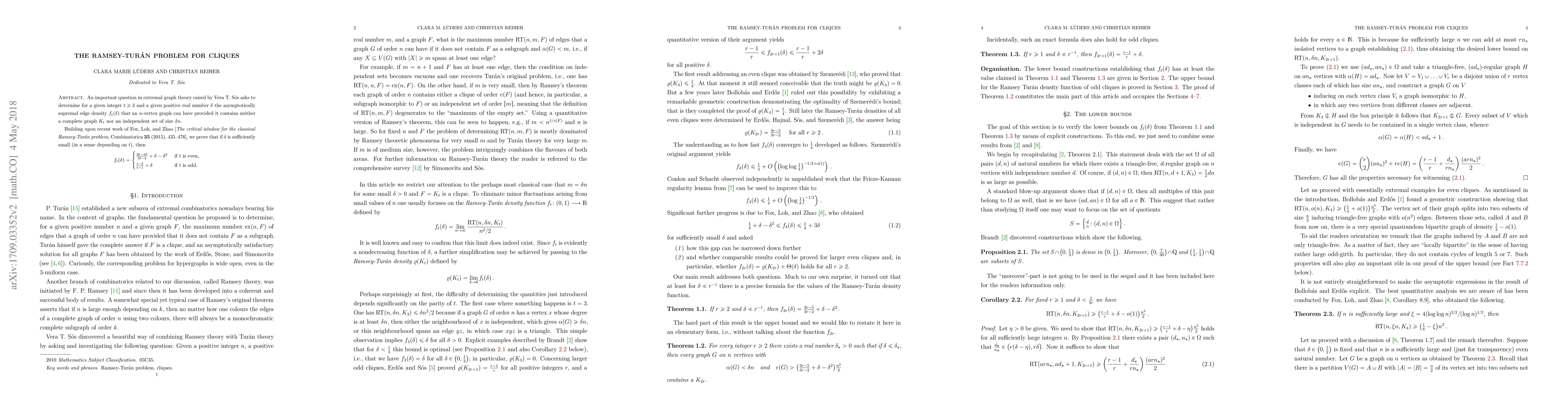 An important question in extremal graph theory raised by Vera T. S\'os asks to determine for a given integer $t\ge 3$ and a given positive real number $\delta$ the asymptotically supremal edge density $f_t(\delta)$ that an $n$-vertex graph can have provided it contains neither a complete graph $K_t$ nor an independent set of size $\delta n$. Building upon recent work of Fox, Loh, and Zhao [The critical window for the classical Ramsey-Tur\'an problem, Combinatorica 35 (2015), 435-476], we prove that if $\delta$ is sufficiently small (in a sense depending on $t$), then \[ f_t(\delta)= \begin{cases} \frac{3t-10}{3t-4}+\delta-\delta^2 & \text{ if $t$ is even,} \cr \frac{t-3}{t-1}+\delta & \text{ if $t$ is odd.} \end{cases} \]