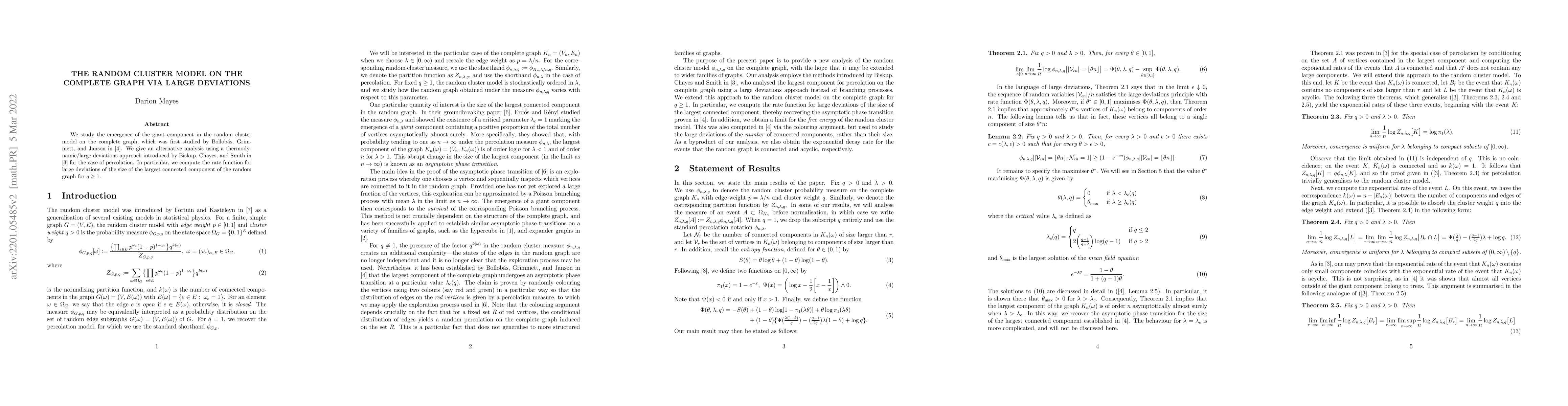 Researchers study the giant component in a random cluster model on the complete graph using large deviations analysis, revealing insights into percolation behavior.