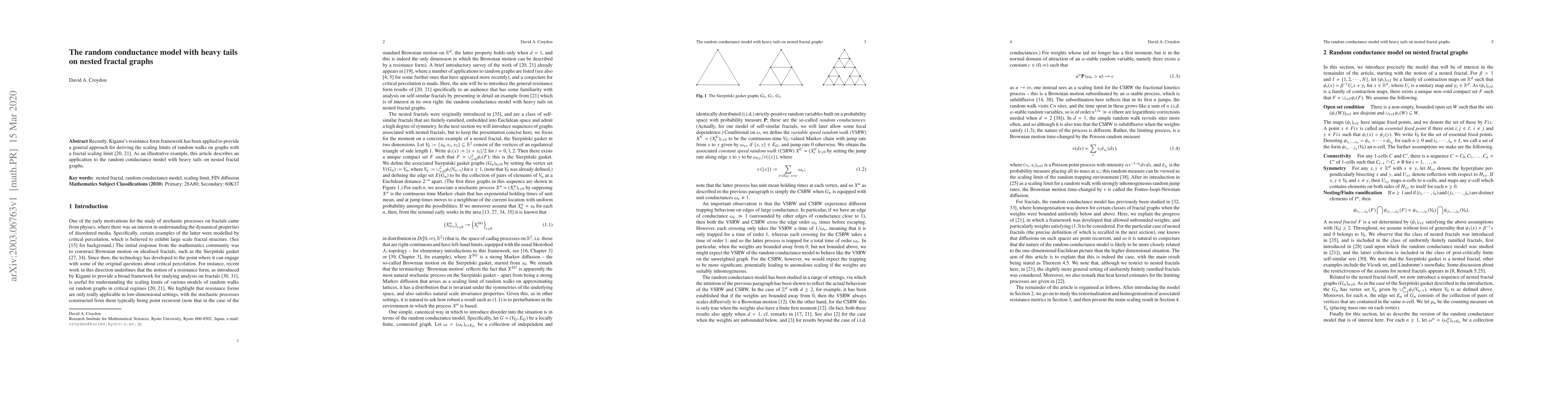 Recently, Kigami's resistance form framework has been applied to provide a general approach for deriving the scaling limits of random walks on graphs with a fractal scaling limit. As an illustrative example, this article describes an application to the random conductance model with heavy tails on nested fractal graphs.