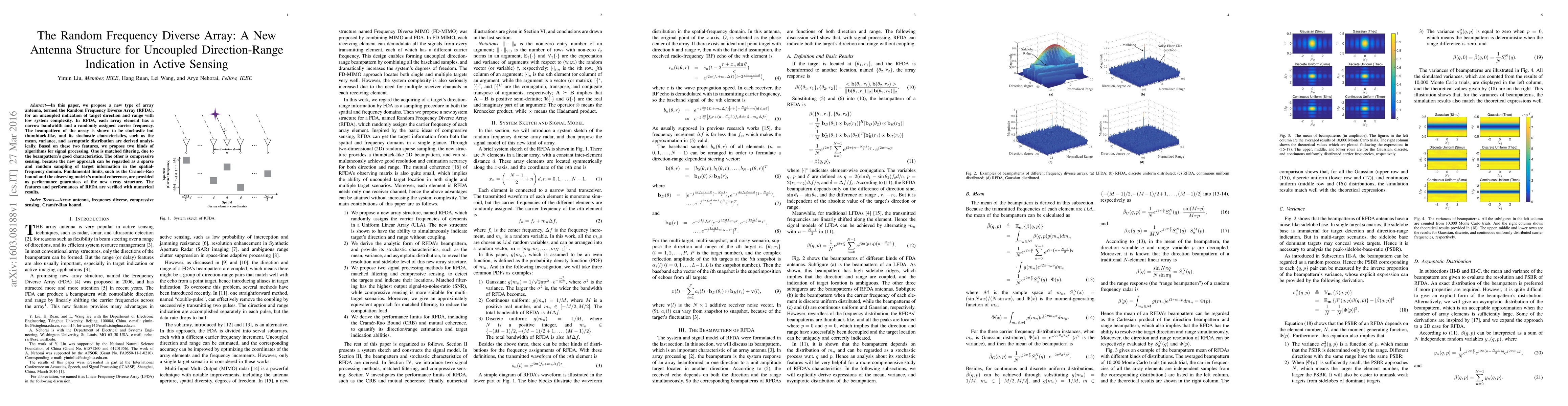 This paper introduces the Random Frequency Diverse Array (RFDA), a novel antenna structure for uncoupled direction-range indication in active sensing, characterized by low system complexity and stochastic beampatterns. The paper proposes algorithms for signal processing and provides performance guarantees based on fundamental limits.