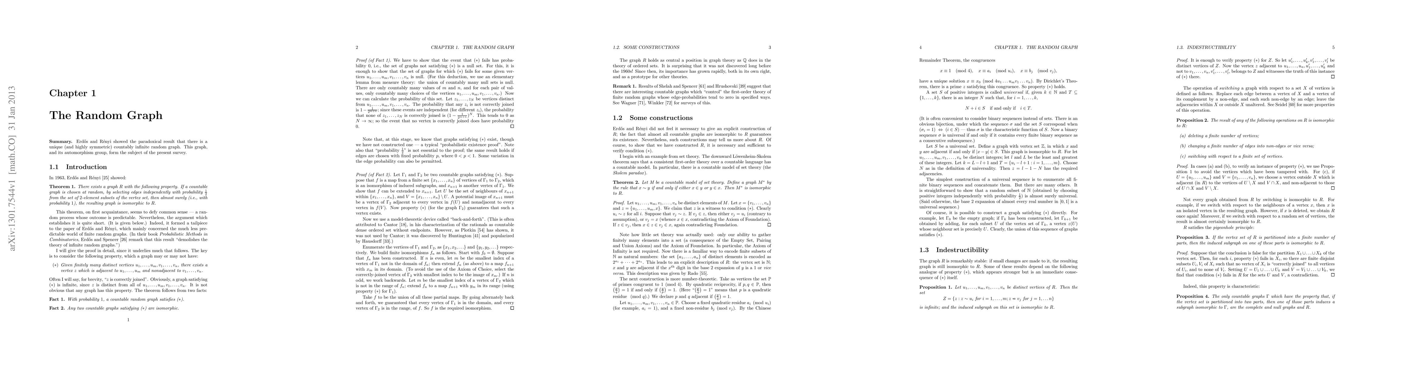 Erd\H{o}s and R\'{e}nyi showed the paradoxical result that there is a unique (and highly symmetric) countably infinite random graph. This graph, and its automorphism group, form the subject of the present survey.