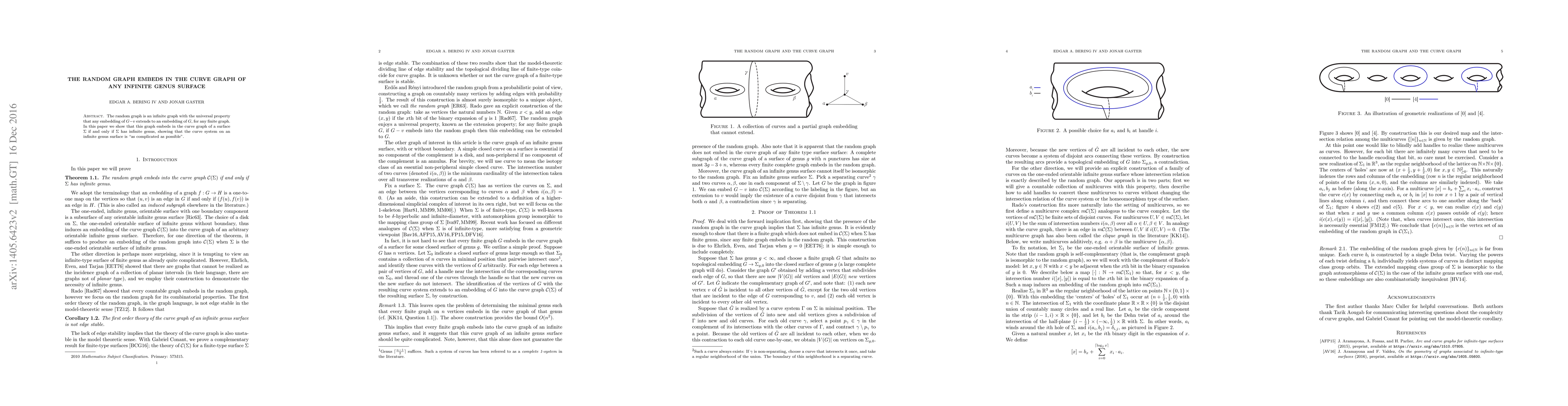 The random graph is an infinite graph with the universal property that any embedding of $G-v$ extends to an embedding of $G$, for any finite graph. In this paper we show that this graph embeds in the curve graph of a surface $\Sigma$ if and only if $\Sigma$ has infinite genus, showing that the curve system on an infinite genus surface is "as complicated as possible".