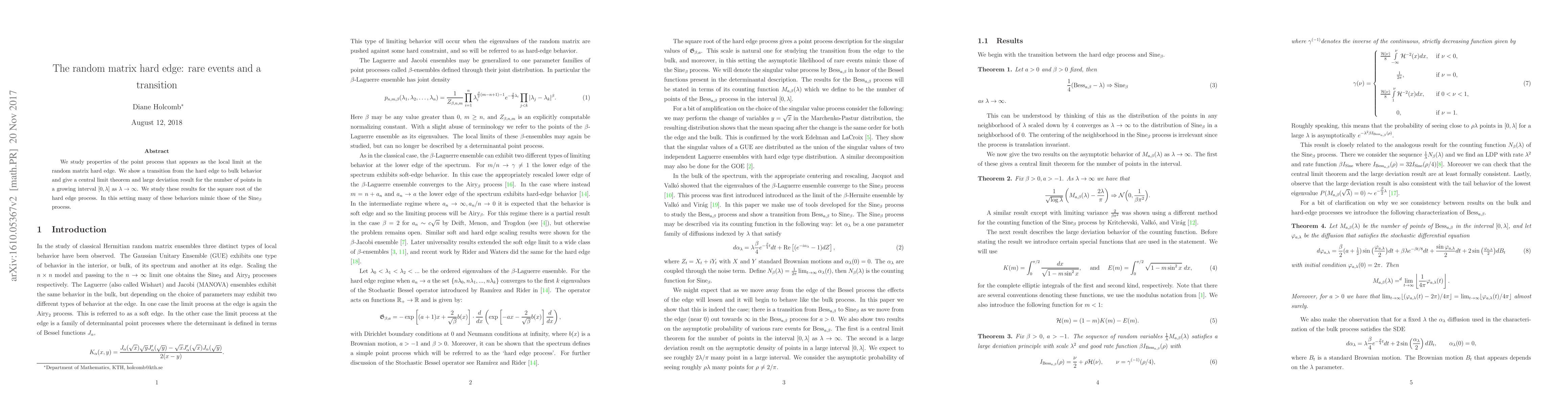 This paper investigates rare events and transitions in the random matrix hard edge, focusing on the asymptotic behavior of the limiting point process. It demonstrates a shift from hard edge to bulk behavior, including a central limit theorem and large deviation results for the number of points in a growing interval.