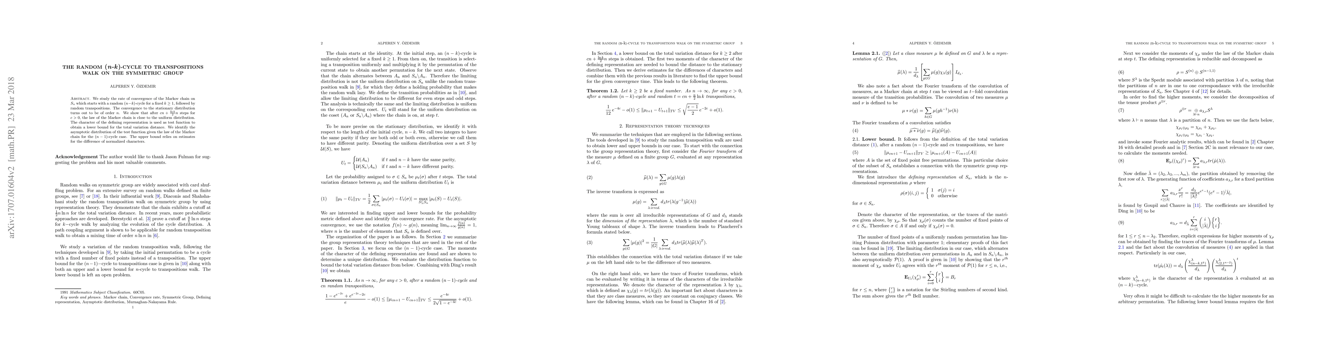 A Markov chain starting with a random cycle followed by transpositions converges to a uniform distribution in $cn + rac{ ext{ln } k}{2}n$ steps for $c > 0$. The law of the chain is close to the uniform distribution after this time.