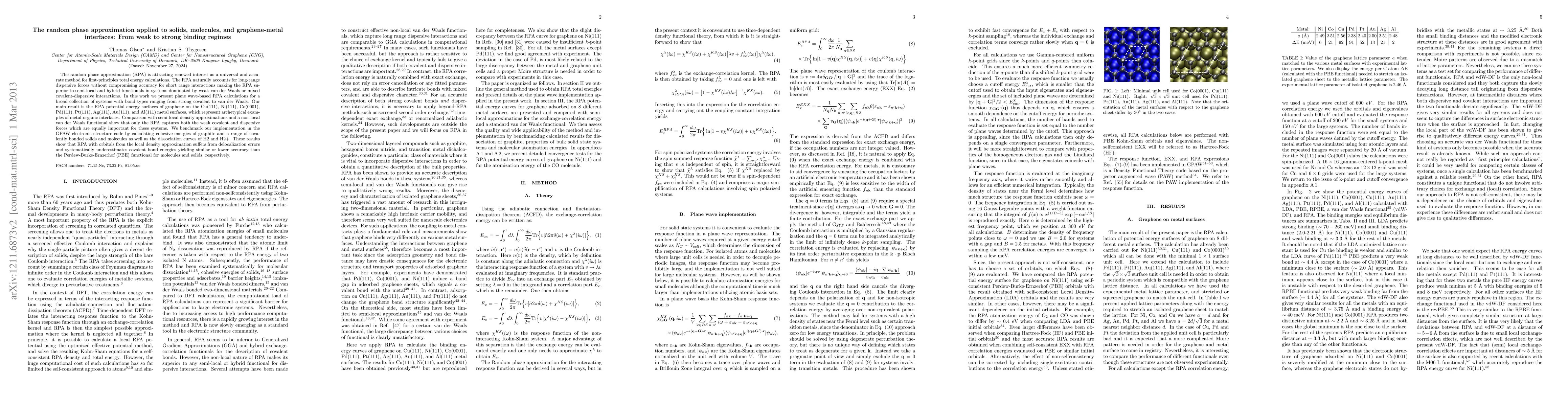 The random phase approximation (RPA) is attracting renewed interest as a universal and accurate method for first-principles total energy calculations. The RPA naturally accounts for long-range dispersive forces without compromising accuracy for short range interactions making the RPA superior to semi-local and hybrid functionals in systems dominated by weak van der Waals or mixed covalent-dispersive interactions. In this work we present plane wave-based RPA calculations for a broad collection of systems with bond types ranging from strong covalent to van der Waals. Our main result is the RPA potential energy surfaces of graphene on the Cu(111), Ni(111), Co(0001), Pd(111), Pt(111), Ag(111), Au(111), and Al(111) metal surfaces, which represent archetypical examples of metal-organic interfaces. Comparison with semi-local density approximations and a non-local van der Waals functional show that only the RPA captures both the weak covalent and dispersive forces which are equally important for these systems. We benchmark our implementation in the GPAW electronic structure code by calculating cohesive energies of graphite and a range of covalently bonded solids and molecules as well as the dissociation curves of H2 and H2+. These results show that RPA with orbitals from the local density approximation suffers from delocalization errors and systematically underestimates covalent bond energies yielding similar or lower accuracy than the Perdew-Burke-Ernzerhof (PBE) functional for molecules and solids, respectively.