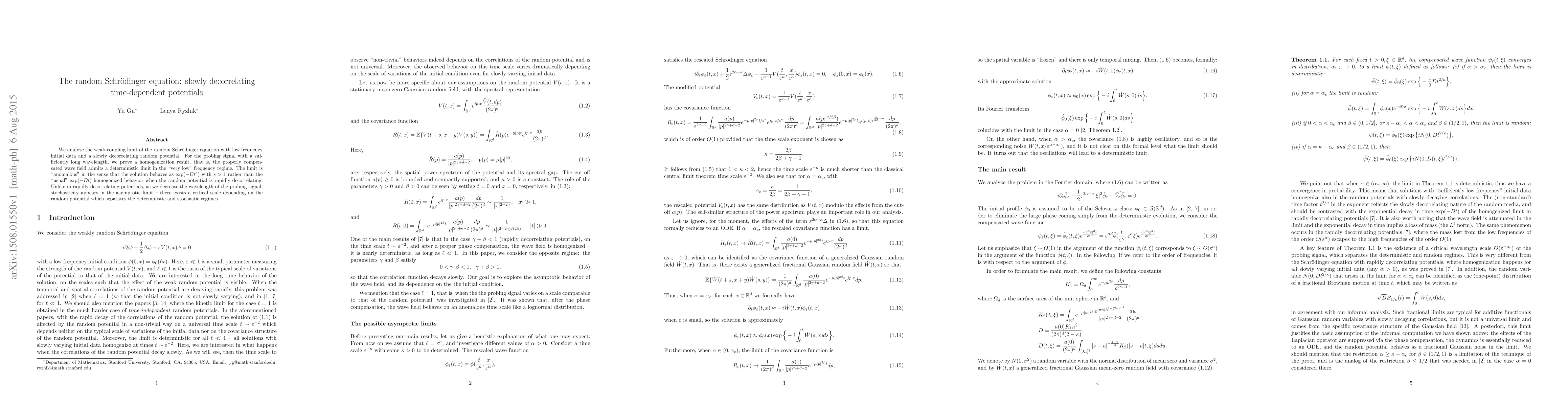 This paper investigates the weak-coupling limit of the random Schrödinger equation with a slowly decorrelating potential, proving homogenization for long-wavelength signals. The solution exhibits an anomalous decay rate, $\exp(-Dt^{s})$ with $s>1$, differing from the usual $\exp(-Dt)$ behavior seen in rapidly decorrelating potentials. A critical scale separates deterministic and stochastic regimes as the probing signal's wavelength decreases.