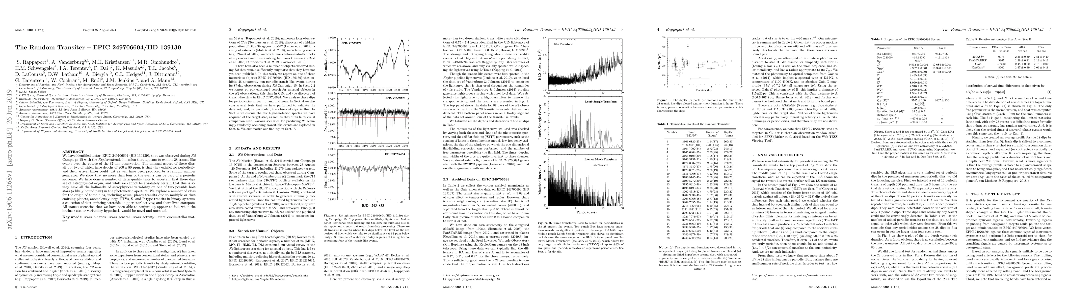 We have identified a star, EPIC 249706694 (HD 139139), that was observed during K2 Campaign 15 with the Kepler extended mission that appears to exhibit 28 transit-like events over the course of the 87-day observation. The unusual aspect of these dips, all but two of which have depths of $200 \pm 80$ ppm, is that they exhibit no periodicity, and their arrival times could just as well have been produced by a random number generator. We show that no more than four of the events can be part of a periodic sequence. We have done a number of data quality tests to ascertain that these dips are of astrophysical origin, and while we cannot be absolutely certain that this is so, they have all the hallmarks of astrophysical variability on one of two possible host stars (a likely bound pair) in the photometric aperture. We explore a number of ideas for the origin of these dips, including actual planet transits due to multiple or dust emitting planets, anomalously large TTVs, S- and P-type transits in binary systems, a collection of dust-emitting asteroids, `dipper-star' activity, and short-lived starspots. All transit scenarios that we have been able to conjure up appear to fail, while the intrinsic stellar variability hypothesis would be novel and untested.