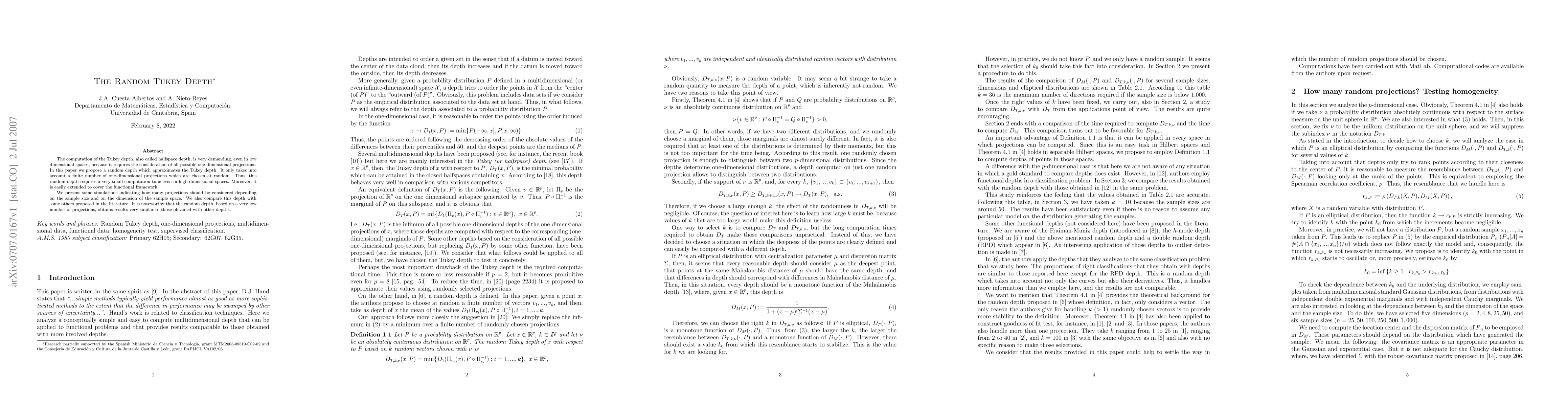 This paper proposes a computationally efficient random approximation of the Tukey depth, which significantly reduces the number of required one-dimensional projections. Simulations show that this random depth provides results comparable to other methods with minimal computation time, even in high-dimensional spaces.