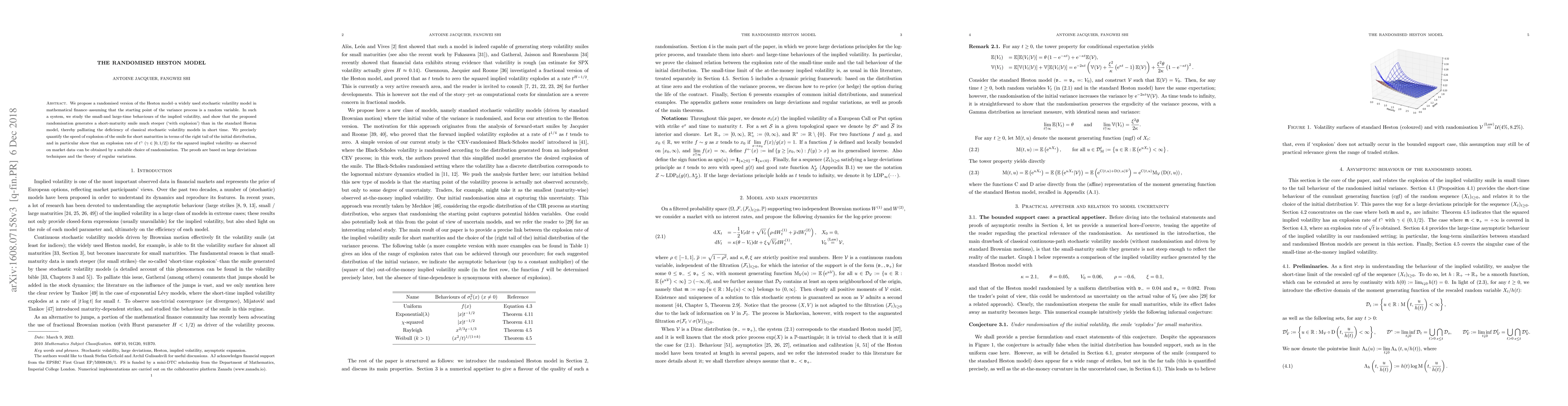 We propose a randomised version of the Heston model-a widely used stochastic volatility model in mathematical finance-assuming that the starting point of the variance process is a random variable. In such a system, we study the small-and large-time behaviours of the implied volatility, and show that the proposed randomisation generates a short-maturity smile much steeper (`with explosion') than in the standard Heston model, thereby palliating the deficiency of classical stochastic volatility models in short time. We precisely quantify the speed of explosion of the smile for short maturities in terms of the right tail of the initial distribution, and in particular show that an explosion rate of~$t^\gamma$ ($\gamma\in[0,1/2]$) for the squared implied volatility--as observed on market data--can be obtained by a suitable choice of randomisation. The proofs are based on large deviations techniques and the theory of regular variations.