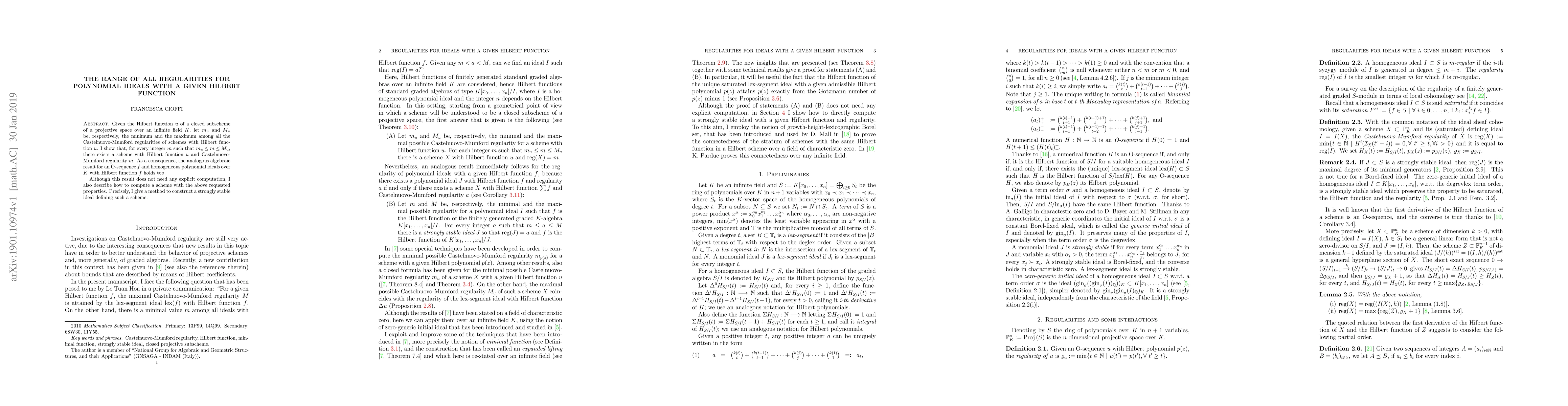 Given the Hilbert function $u$ of a closed subscheme of a projective space over an infinite field $K$, let $m_u$ and $M_u$ be, respectively, the minimum and the maximum among all the Castelnuovo-Mumford regularities of schemes with Hilbert function $u$. I show that, for every integer $m$ such that $m_u \leq m \leq M_u$, there exists a scheme with Hilbert function $u$ and Castelnuovo-Mumford regularity $m$. As a consequence, the analogous algebraic result for an O-sequence $f$ and homogeneous polynomial ideals over $K$ with Hilbert function $f$ holds too. Although this result does not need any explicit computation, I also describe how to compute a scheme with the above requested properties. Precisely, I give a method to construct a strongly stable ideal defining such a scheme.