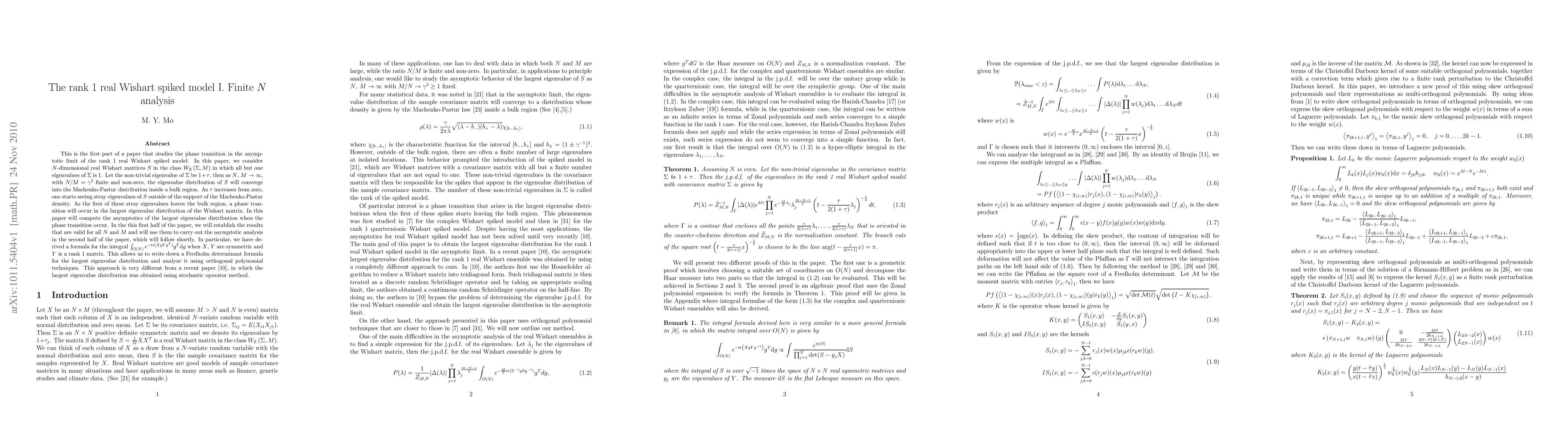 This paper studies the phase transition in a specific type of Wishart matrix as its dimensions approach infinity, and finds that a key eigenvalue distribution undergoes a transition with increasing eigenvalue size.