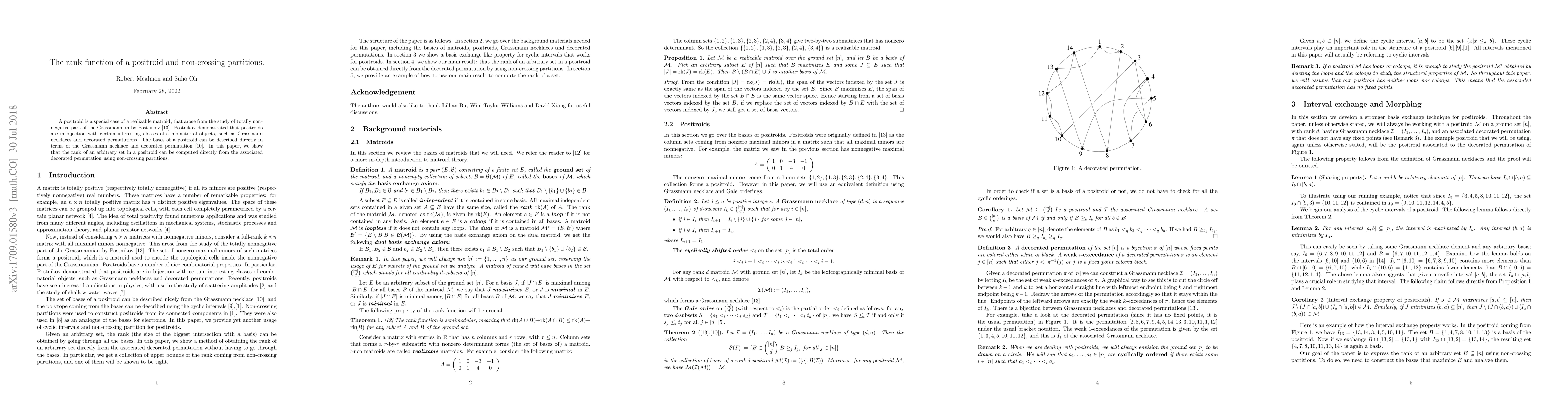 This paper explores the rank function of positroids, which are special matroids linked to the totally nonnegative Grassmannian, and demonstrates how the rank can be computed via non-crossing partitions associated with decorated permutations. The study connects positroids to combinatorial structures like Grassmann necklaces.