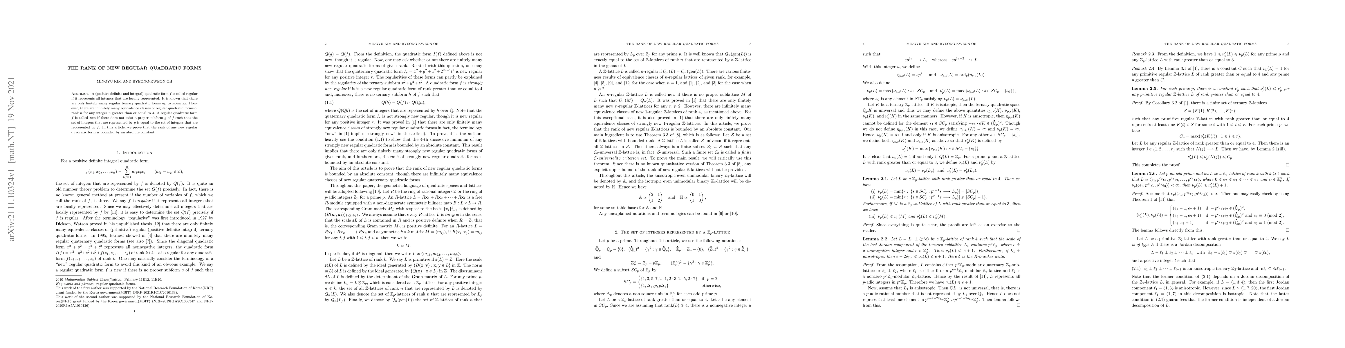 This paper investigates the properties of new regular quadratic forms, proving that their rank is limited by a fixed constant, contrasting with the infinite variety of equivalence classes for regular quadratic forms of rank $n \geq 4$.