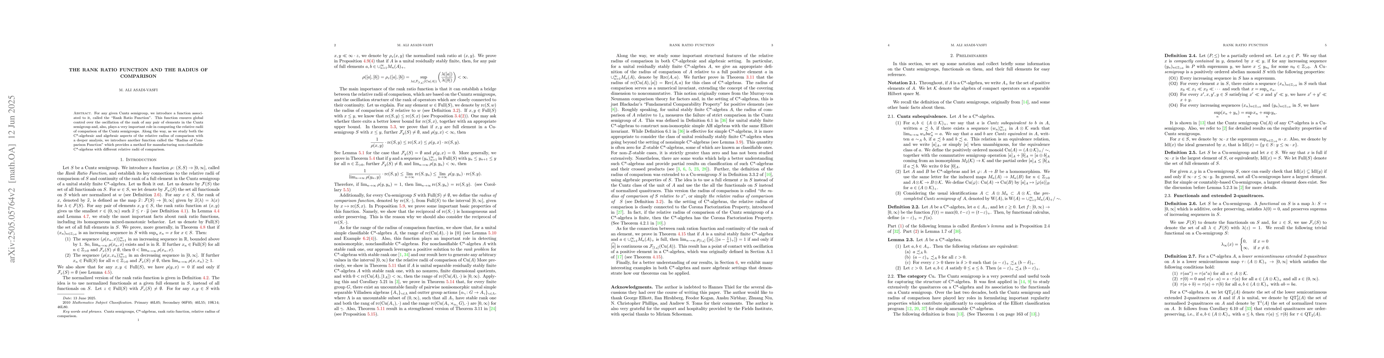 The paper introduces the Rank Ratio Function for Cuntz semigroups, analyzing both C*-algebraic and algebraic aspects of relative radius of comparison, and also presents the Radius of Comparison Function for constructing C*-algebras with distinct relative radii of comparison.