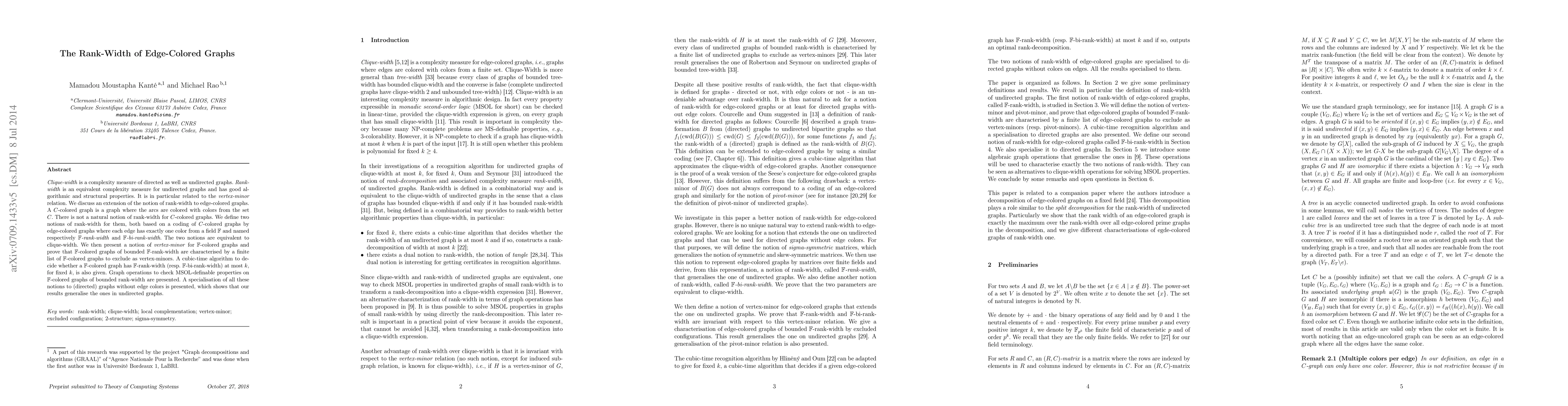 The paper introduces two new rank-width notions, F-rank-width and F-bi-rank-width, for edge-colored graphs based on coding techniques, analogous to clique-width. It also establishes a vertex-minor relation for these graphs and provides a cubic-time algorithm to determine if a given edge-colored graph has bounded rank-width.