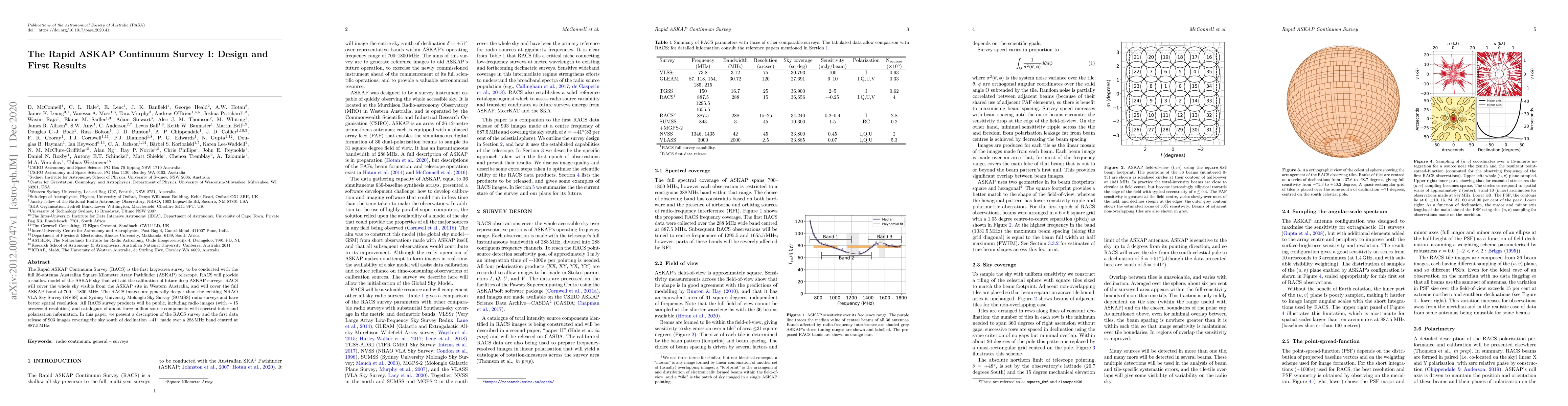 The Rapid ASKAP Continuum Survey (RACS) is the first large-area survey using the full 36-antenna ASKAP telescope, providing a shallow sky model to aid future deep surveys. The first data release includes 903 images covering the southern sky, offering deeper and higher resolution radio images than existing surveys.