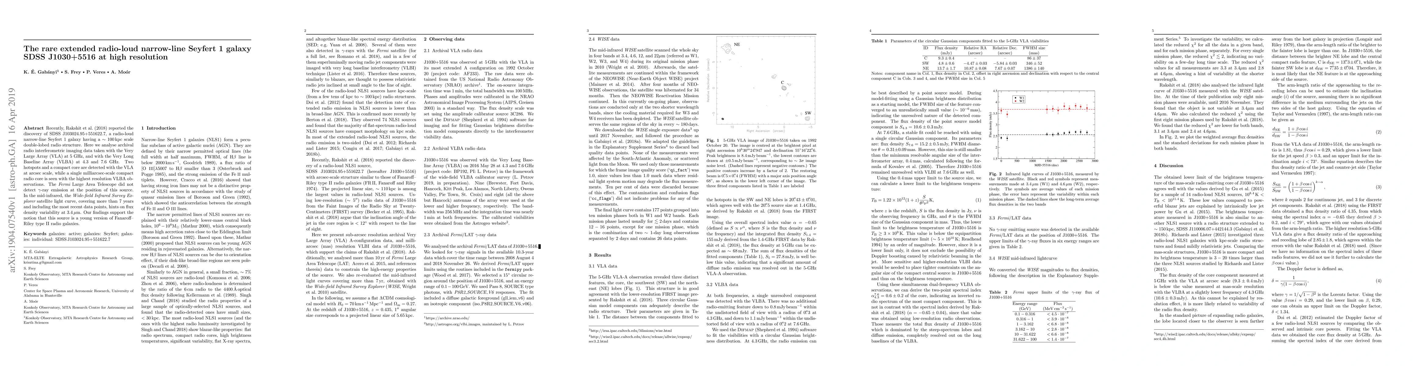 Recently, Rakshit et al. (2018) reported the discovery of SDSS J103024.95$+$551622.7, a radio-loud narrow-line Seyfert 1 galaxy having a $\sim 100$ kpc scale double-lobed radio structure. Here we analyse archival radio interferometric imaging data taken with the Very Large Array (VLA) at 5 GHz, and with the Very Long Baseline Array (VLBA) at 4.3 and 7.6 GHz. Two hotspots and a compact core are detected with the VLA at arcsec scale, while a single milliarcsec-scale compact radio core is seen with the highest resolution VLBA observations. The Fermi Large Area Telescope did not detect $\gamma$-ray emission at the position of this source. In the mid-infrared, the Wide-field Infrared Survey Explorer satellite light curve, covering more than 7 years and including the most recent data points, hints on flux density variability at 3.4 $\mu$m. Our findings support the notion that this source is a young version of Fanaroff-Riley type II radio galaxies.
