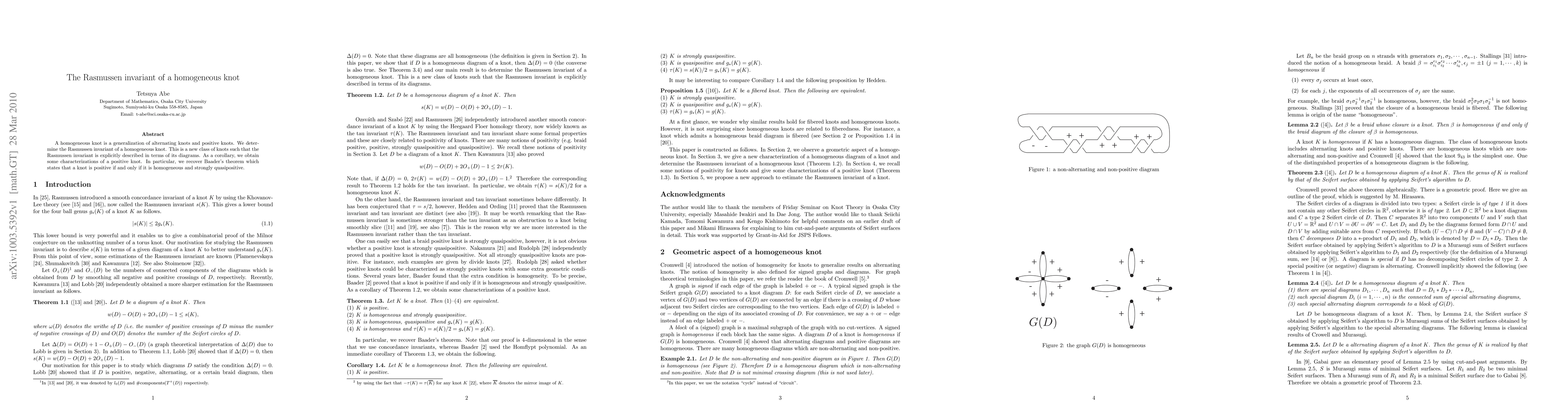 This paper introduces homogeneous knots, a generalization of alternating and positive knots, and determines their Rasmussen invariant explicitly in terms of knot diagrams. As a result, it provides new characterizations of positive knots, including a rediscovery of Baader's theorem.