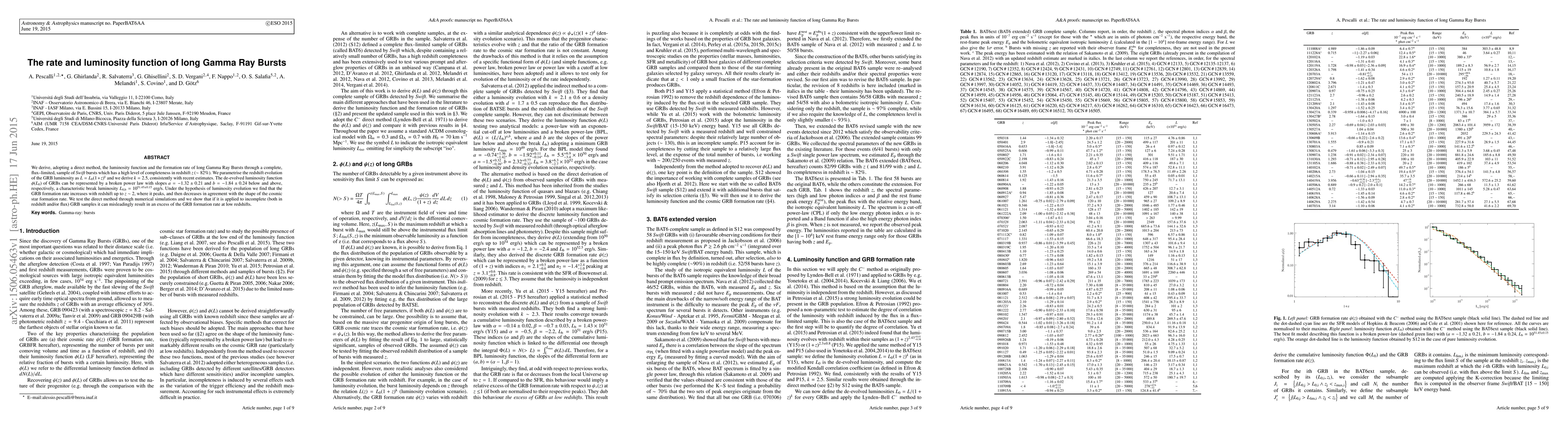 This paper derives the luminosity function and formation rate of long Gamma Ray Bursts (GRBs) using a complete, flux-limited sample from Swift, finding a redshift evolution parameter k = 2.5. The de-evolved luminosity function is represented by a broken power law with characteristic break luminosity L_0,b = 10^51.45 erg/s. The GRB formation rate peaks at z~2 and decreases thereafter, aligning with cosmic star formation trends.