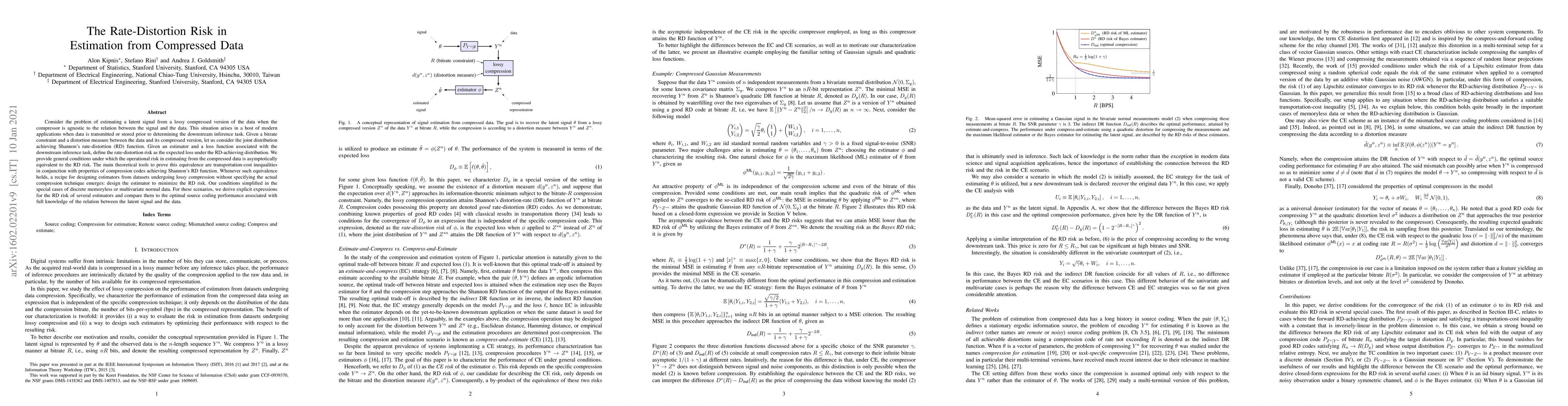 Consider the problem of estimating a latent signal from a lossy compressed version of the data when the compressor is agnostic to the relation between the signal and the data. This situation arises in a host of modern applications when data is transmitted or stored prior to determining the downstream inference task. Given a bitrate constraint and a distortion measure between the data and its compressed version, let us consider the joint distribution achieving Shannon's rate-distortion (RD) function. Given an estimator and a loss function associated with the downstream inference task, define the rate-distortion risk as the expected loss under the RD-achieving distribution. We provide general conditions under which the operational risk in estimating from the compressed data is asymptotically equivalent to the RD risk. The main theoretical tools to prove this equivalence are transportation-cost inequalities in conjunction with properties of compression codes achieving Shannon's RD function. Whenever such equivalence holds, a recipe for designing estimators from datasets undergoing lossy compression without specifying the actual compression technique emerges: design the estimator to minimize the RD risk. Our conditions simplified in the special cases of discrete memoryless or multivariate normal data. For these scenarios, we derive explicit expressions for the RD risk of several estimators and compare them to the optimal source coding performance associated with full knowledge of the relation between the latent signal and the data.