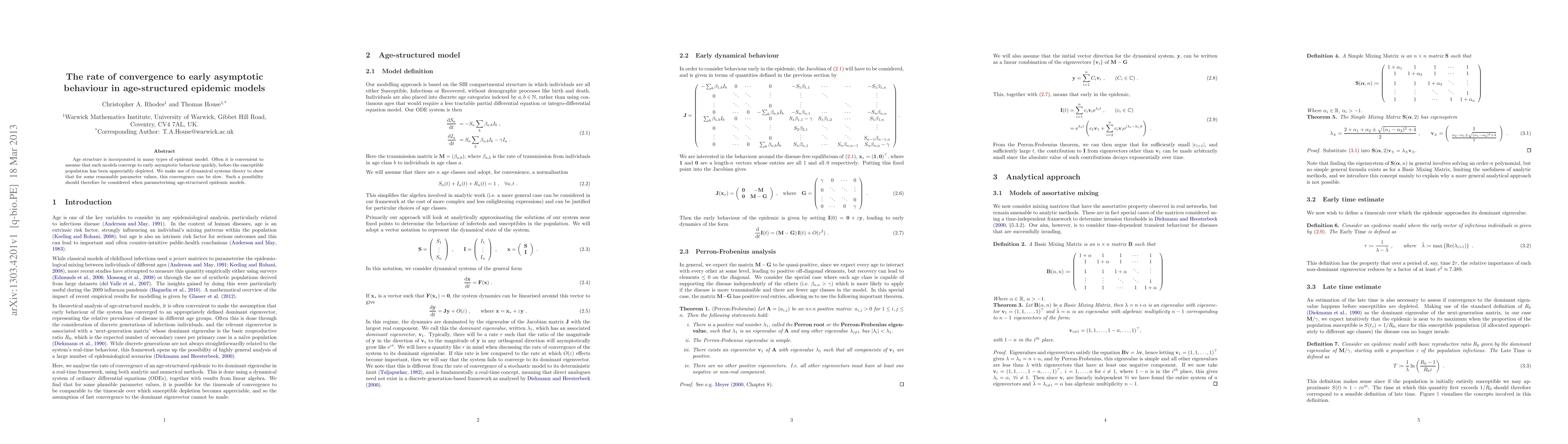 This research uses dynamical systems theory to demonstrate that the convergence to early asymptotic behavior in age-structured epidemic models can be slow for certain parameter values, challenging the common assumption of rapid convergence and urging careful consideration in model parameterization.