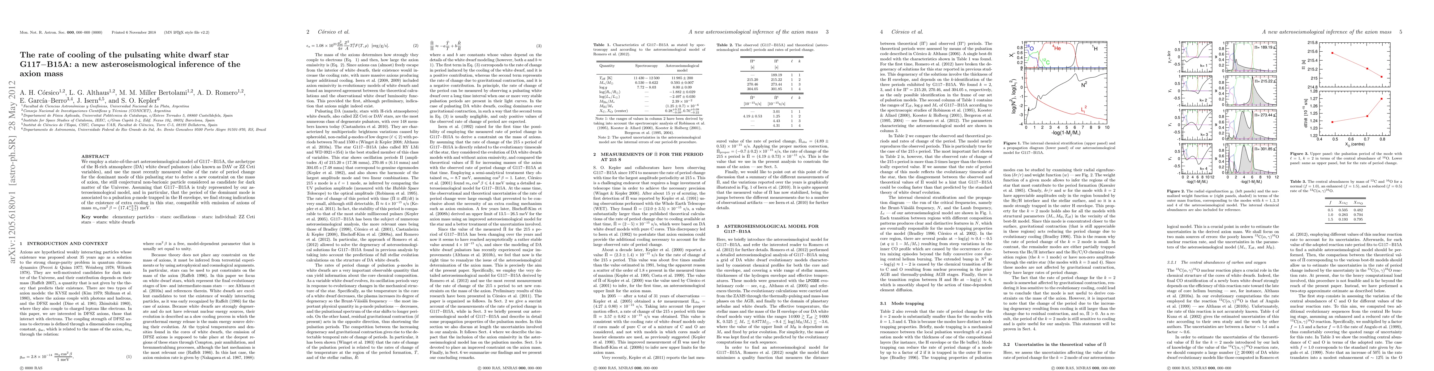 This paper uses asteroseismological modeling of the pulsating white dwarf G117-B15A to derive a new constraint on the mass of axions, proposing that extra cooling in the star is consistent with the emission of axions with a mass of 17.4 ± 2.3 meV.