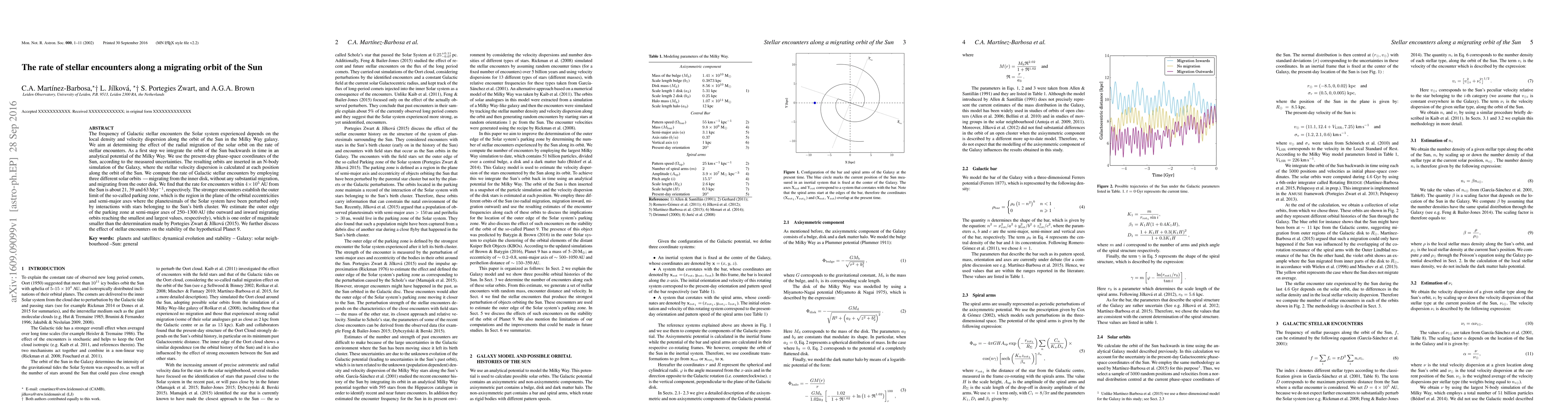 The paper presents a detailed methodology for estimating the rate of Galactic stellar encounters along migrating solar orbits, utilizing both analytical and N-body simulations.