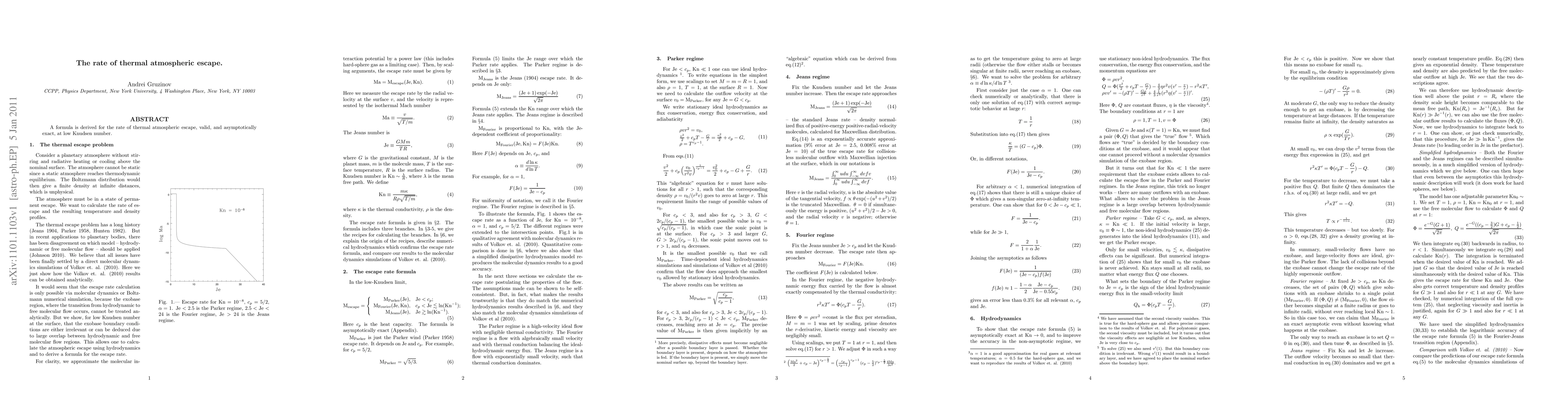 Researchers derive a formula for thermal atmospheric escape rate, valid at low Knudsen numbers, providing new insights into planetary atmospheric loss.