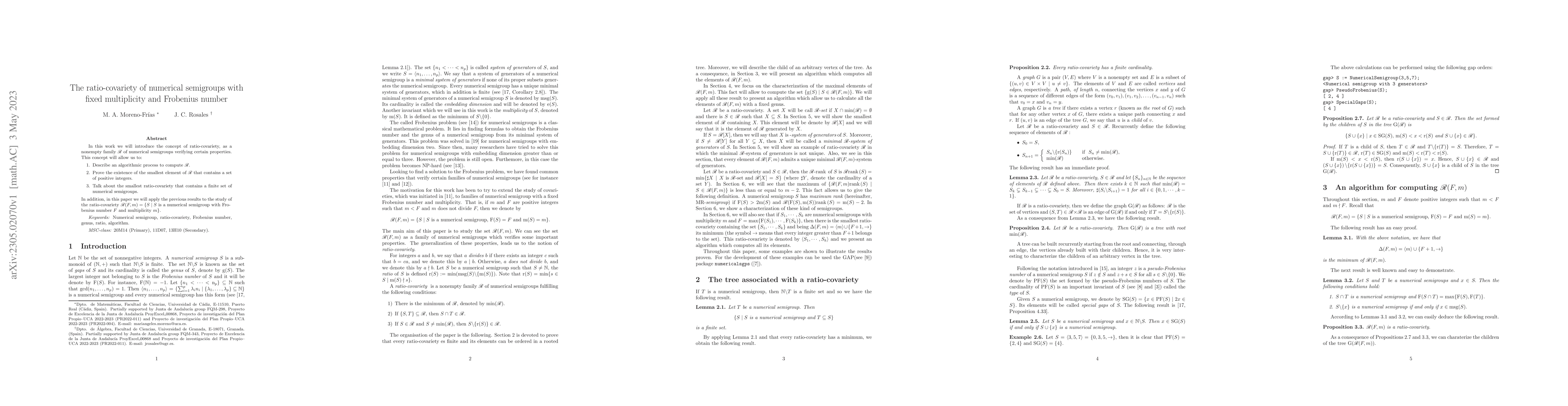 In this work we will introduce the concept of ratio-covariety, as a nonempty family $\mathscr{R}$ of numerical semigroups verifying certain properties. This concept will allow us to: \begin{enumerate} \item Describe an algorithmic process to compute $\mathscr{R}.$ \item Prove the existence of the smallest element of $\sR$ that contains a set of positive integers. \item Talk about the smallest ratio-covariety that contains a finite set of numerical semigroups. \end{enumerate} In addition, in this paper we will apply the previous results to the study of the ratio-covariety $\mathscr{R}(F,m)=\{S\mid S \mbox{ is a numerical semigroup with Fro-} \mbox {benius number }F \mbox{ and multiplicity }m\}.$