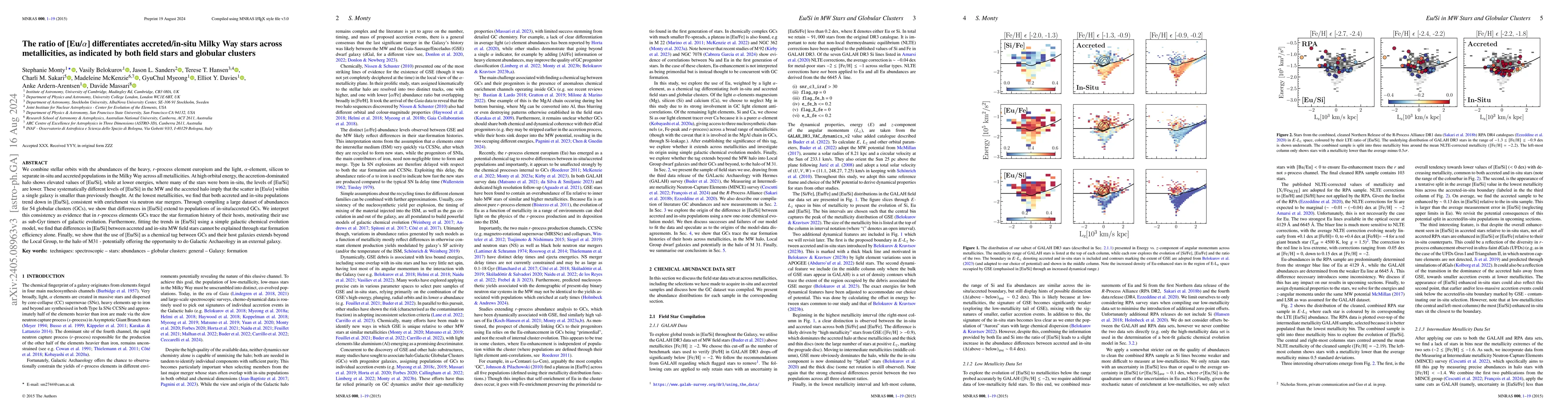 This paper uses the [Eu/Si] ratio to distinguish between Milky Way stars formed in-situ and those accreted from other galaxies, showing that accreted populations have higher [Eu/Si] values. The study also finds that globular clusters' [Eu/Si] ratios mirror the Milky Way's, suggesting they track galactic star formation histories.