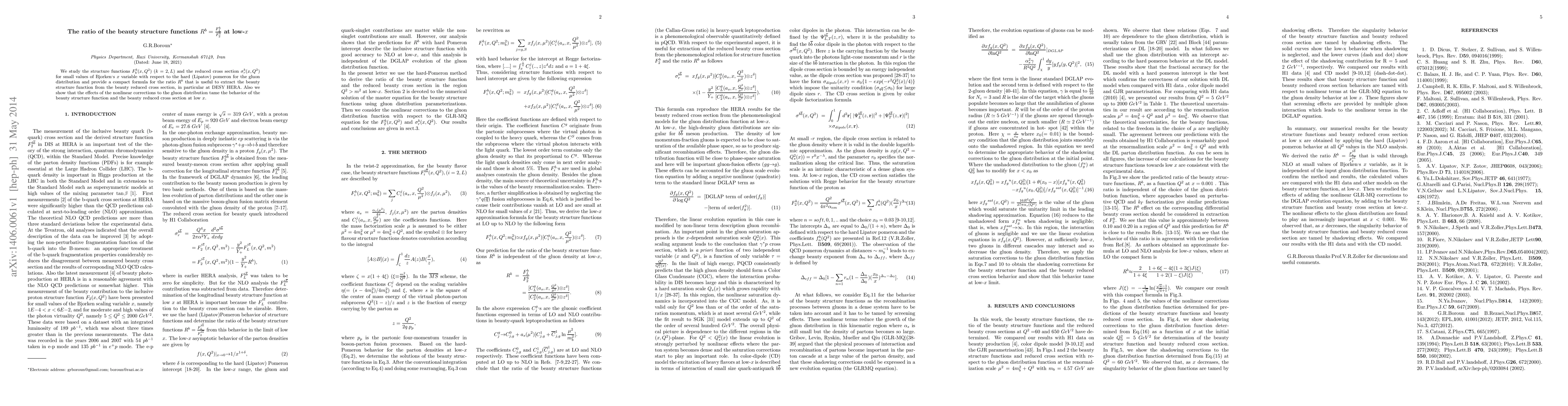 Researchers studied the behavior of structure functions for beauty quarks at low x values, finding that nonlinear corrections tame their behavior and providing a compact formula for the ratio of these functions.