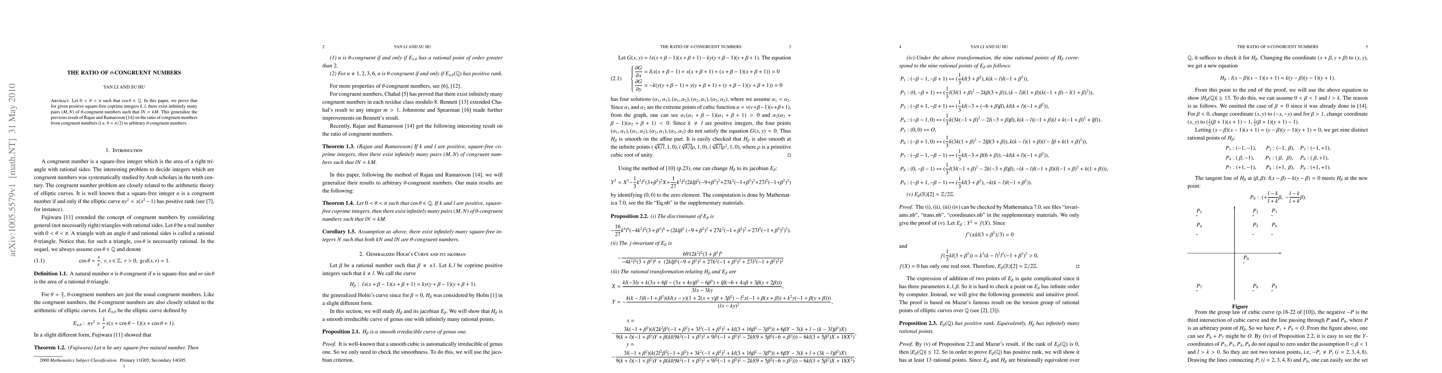 The work is novel in its application of Mazur's famous result to prove the existence of infinitely many pairs (M,N) of θ-congruent numbers, offering a new perspective on the ratio of congruent numbers.