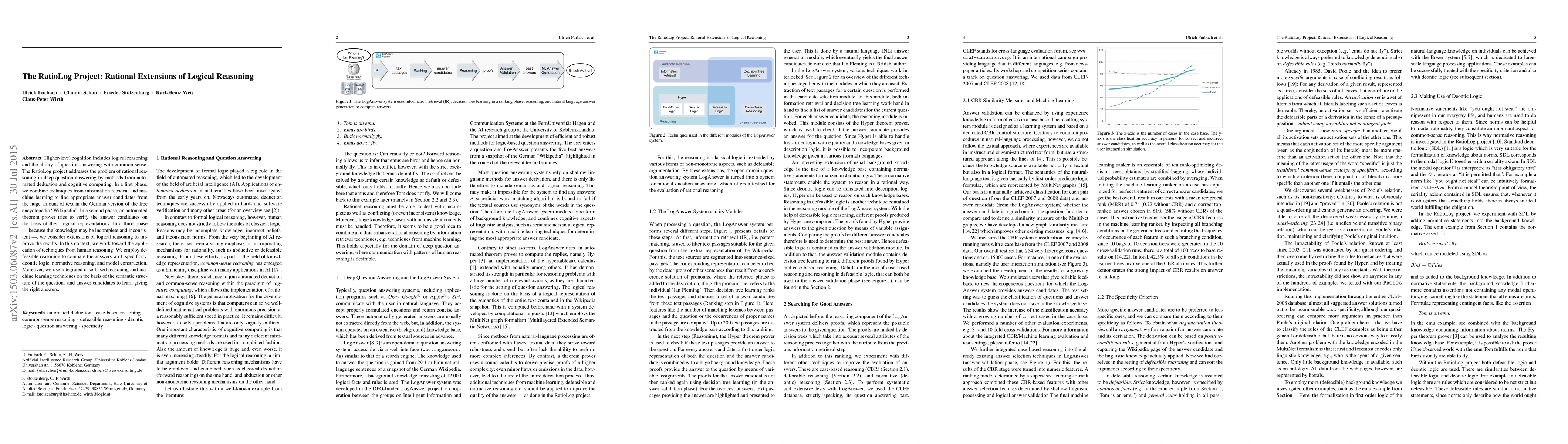 Higher-level cognition includes logical reasoning and the ability of question answering with common sense. The RatioLog project addresses the problem of rational reasoning in deep question answering by methods from automated deduction and cognitive computing. In a first phase, we combine techniques from information retrieval and machine learning to find appropriate answer candidates from the huge amount of text in the German version of the free encyclopedia "Wikipedia". In a second phase, an automated theorem prover tries to verify the answer candidates on the basis of their logical representations. In a third phase - because the knowledge may be incomplete and inconsistent -, we consider extensions of logical reasoning to improve the results. In this context, we work toward the application of techniques from human reasoning: We employ defeasible reasoning to compare the answers w.r.t. specificity, deontic logic, normative reasoning, and model construction. Moreover, we use integrated case-based reasoning and machine learning techniques on the basis of the semantic structure of the questions and answer candidates to learn giving the right answers.