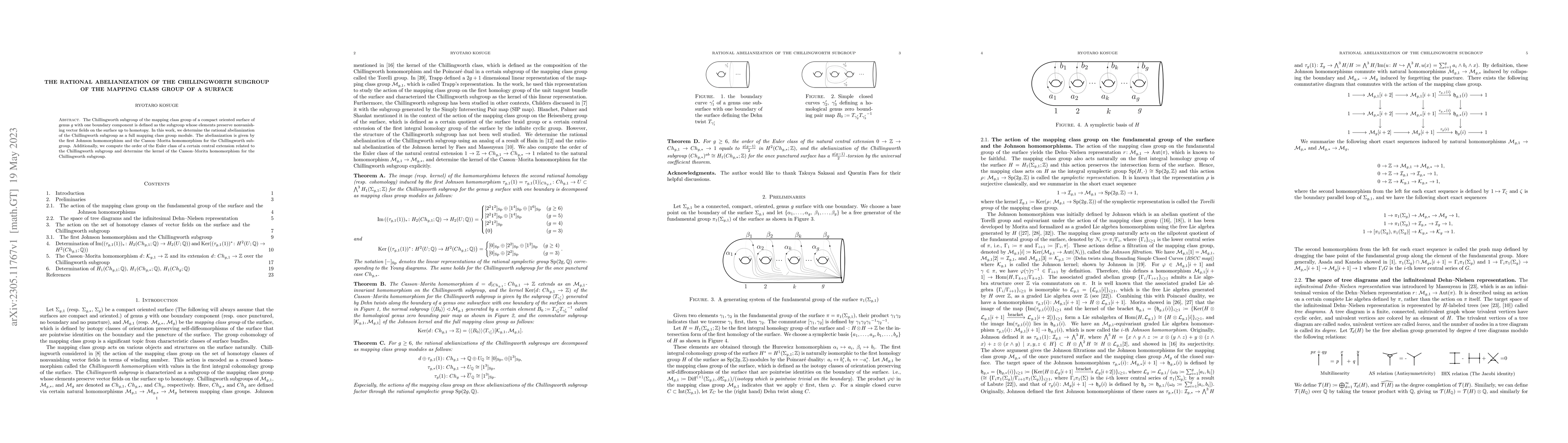 This paper determines the rational abelianization of the Chillingworth subgroup within the mapping class group of a surface, revealing it as a module through the first Johnson and Casson-Morita homomorphisms. It also computes the Euler class order of a central extension and identifies the kernel of the Casson-Morita homomorphism for this subgroup.