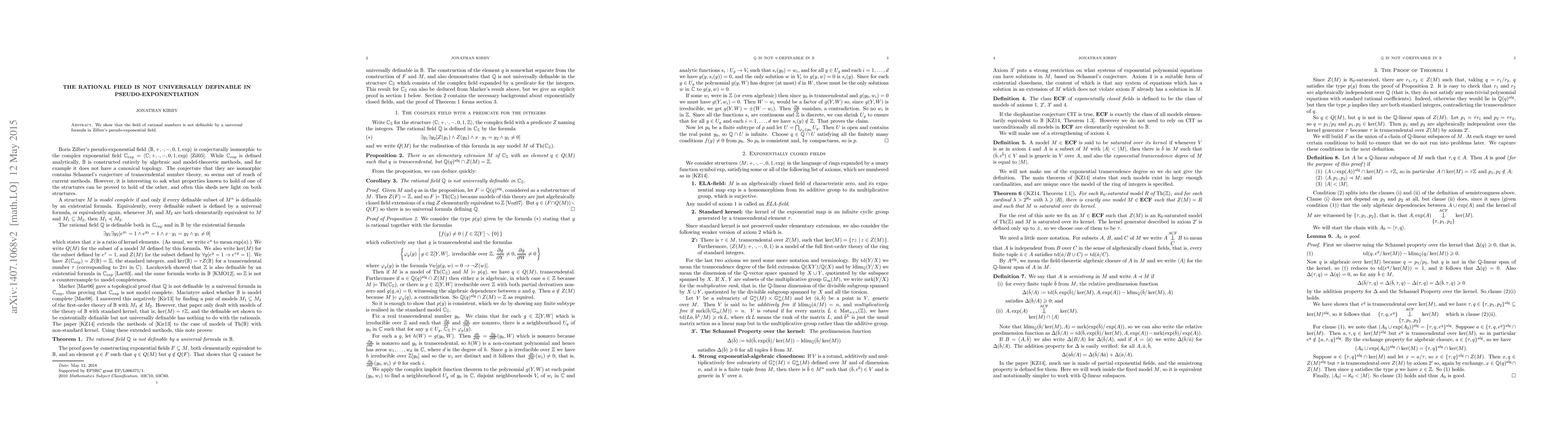We show that the field of rational numbers is not definable by a universal formula in Zilber's pseudo-exponential field.