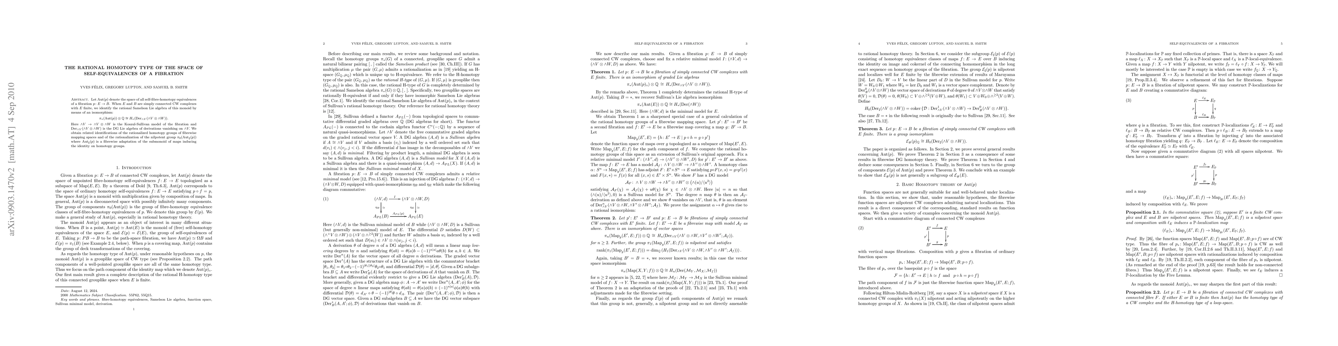Summary: This paper studies the rational homotopy type of the space of self-equivalences of a fibration, identifying the rational Samelson Lie algebra of the identity component of the monoid of fibre-homotopy equivalences through the homology of a DG Lie algebra of derivations derived from the Koszul-Sullivan model. It also explores the rational homotopy groups of fibrewise mapping spaces and the rationalization of a natural nilpotent subgroup of the monoid.