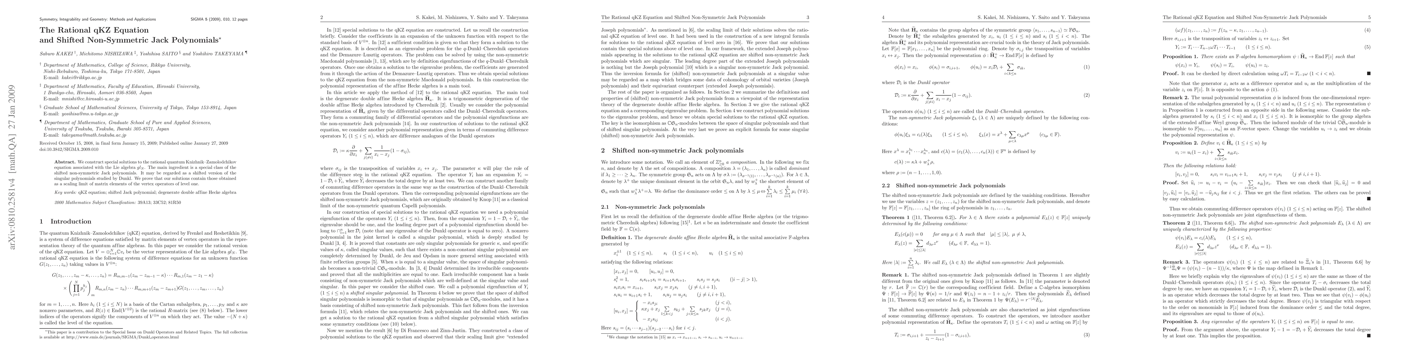 Researchers constructed special solutions to the rational quantum Knizhnik-Zamolodchikov equation using shifted non-symmetric Jack polynomials, which can be seen as a scaling limit of certain matrix elements.