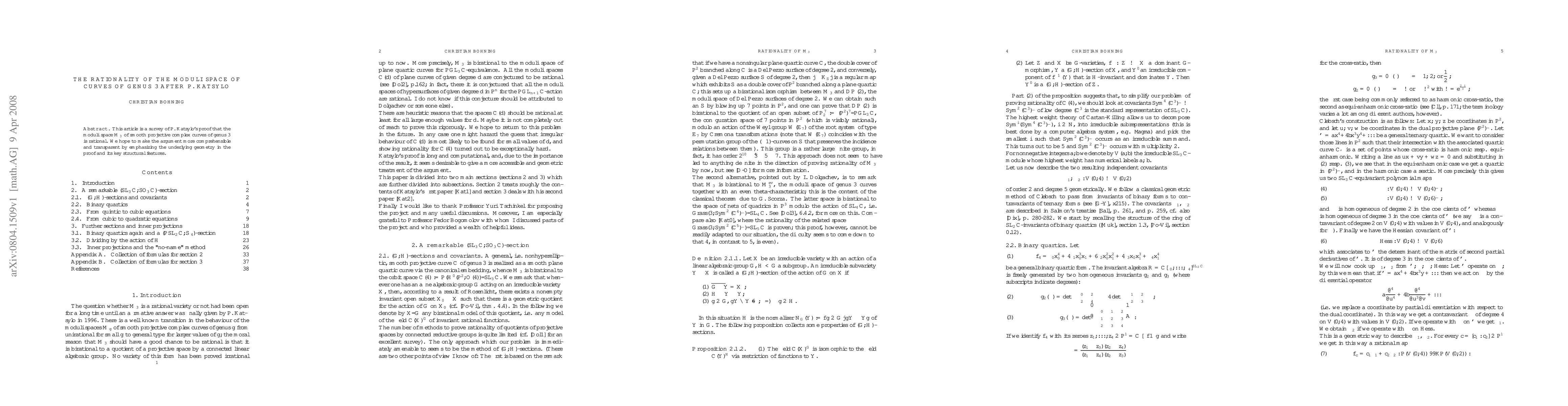 This article is a survey of P. Katsylo's proof that the moduli space of smooth projective complex curves of genus 3 is rational. We hope to make the argument more comprehensible and transparent by emphasizing the underlying geometry in the proof and its key structural features.