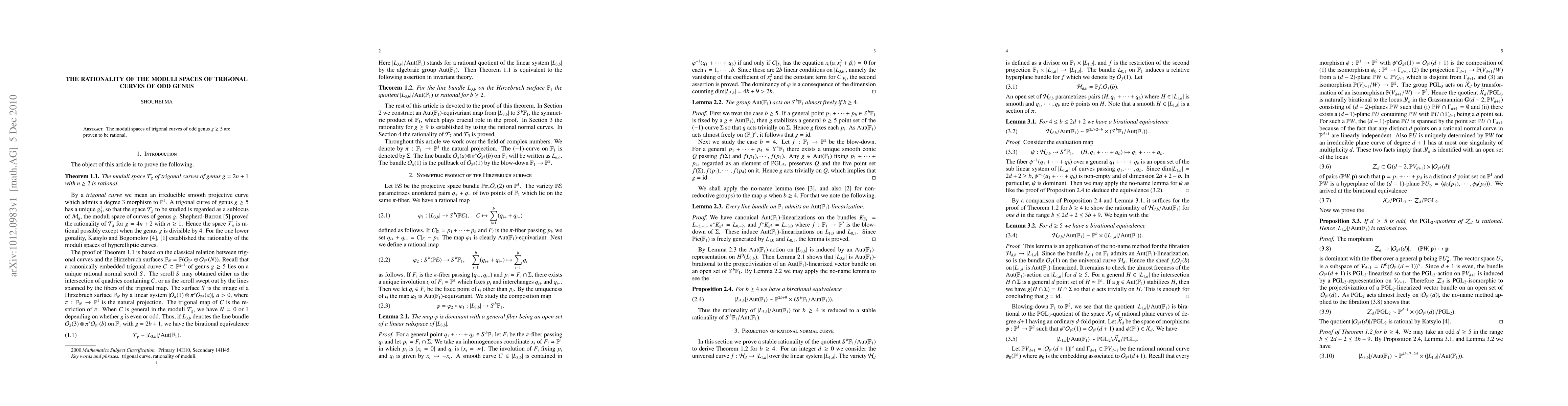 The paper demonstrates that moduli spaces for trigonal curves of odd genus greater than 4 are rational. This result extends understanding of the structure of these complex geometric objects.