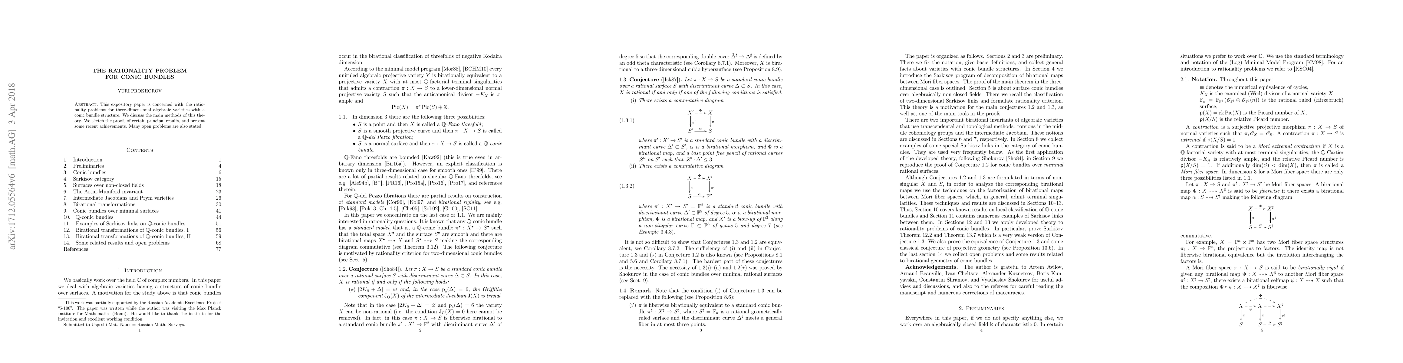 This expository paper is concerned with the rationality problems for three-dimensional algebraic varieties with a conic bundle structure. We discuss the main methods of this theory. We sketch the proofs of certain principal results, and present some recent achievements. Many open problems are also stated.