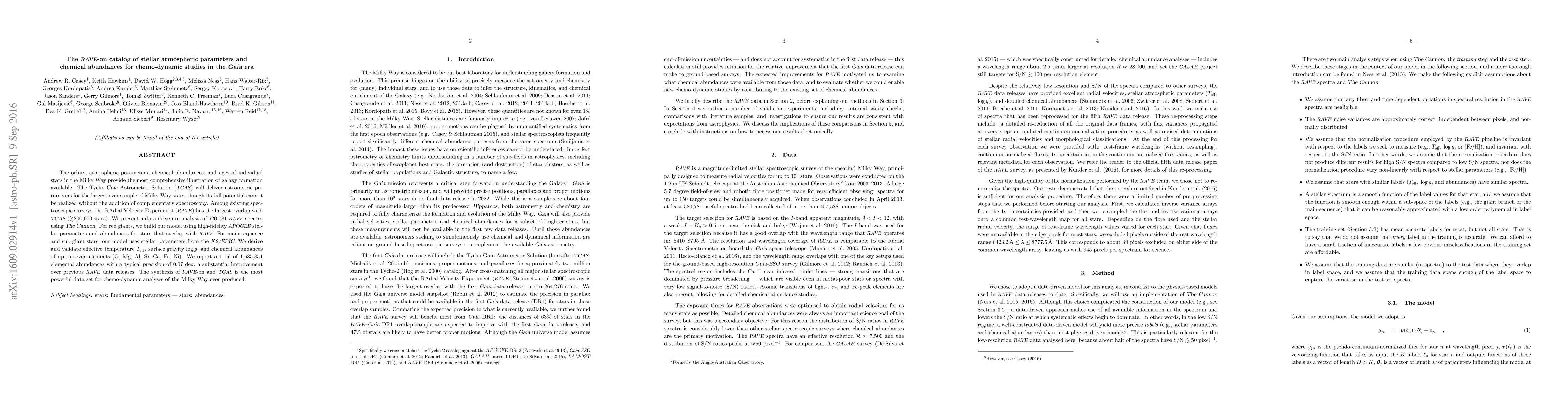 The RAVE-on catalog provides refined stellar atmospheric parameters and chemical abundances for over 520,000 stars, derived from a re-analysis of RAVE spectra using The Cannon. This enhanced dataset, combined with TGAS astrometric data, offers unprecedented opportunities for chemo-dynamic studies of the Milky Way.