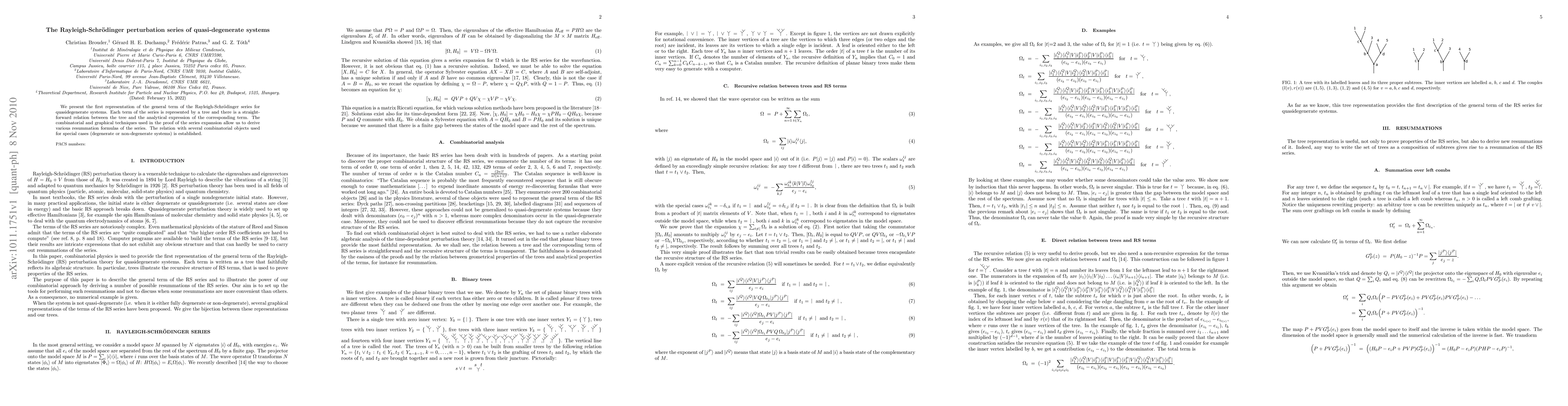Researchers developed a representation for the general term of the Rayleigh-Schr"odinger series in quasidegenerate systems, revealing a straightforward relation between tree representations and analytical expressions.
