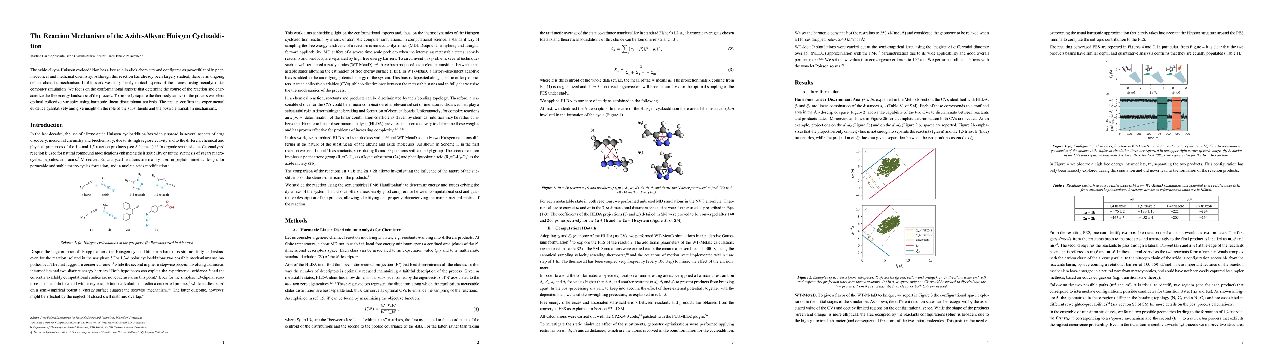 This study uses metadynamics computer simulation to explore the dynamical aspects of the azide-alkyne Huisgen cycloaddition, a crucial reaction in click chemistry. The research characterizes the free energy landscape and validates experimental evidence, offering insights into the role of substituents and potential transition mechanisms.