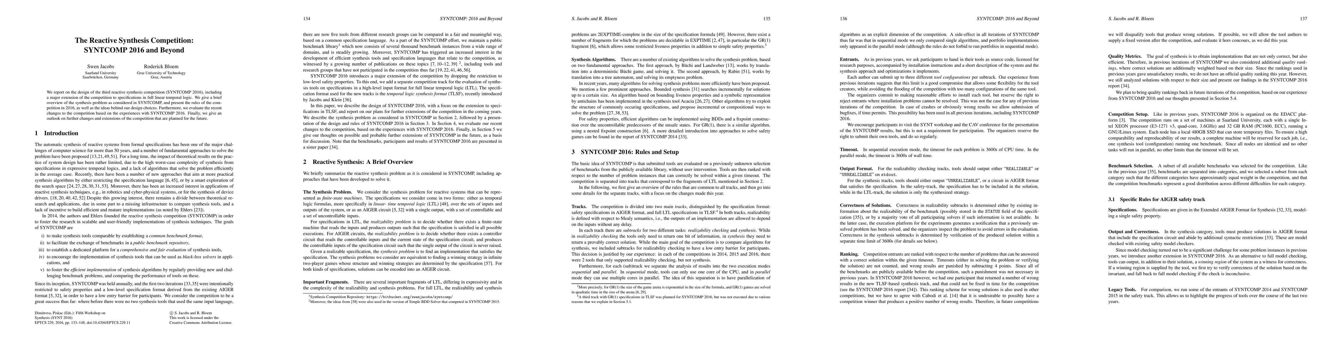 The third reactive synthesis competition, SYNTCOMP 2016, expanded to include specifications in full linear temporal logic, evaluating recent changes based on participant experiences and outlining future enhancements. The competition aims to advance synthesis problem methodologies and design choices.