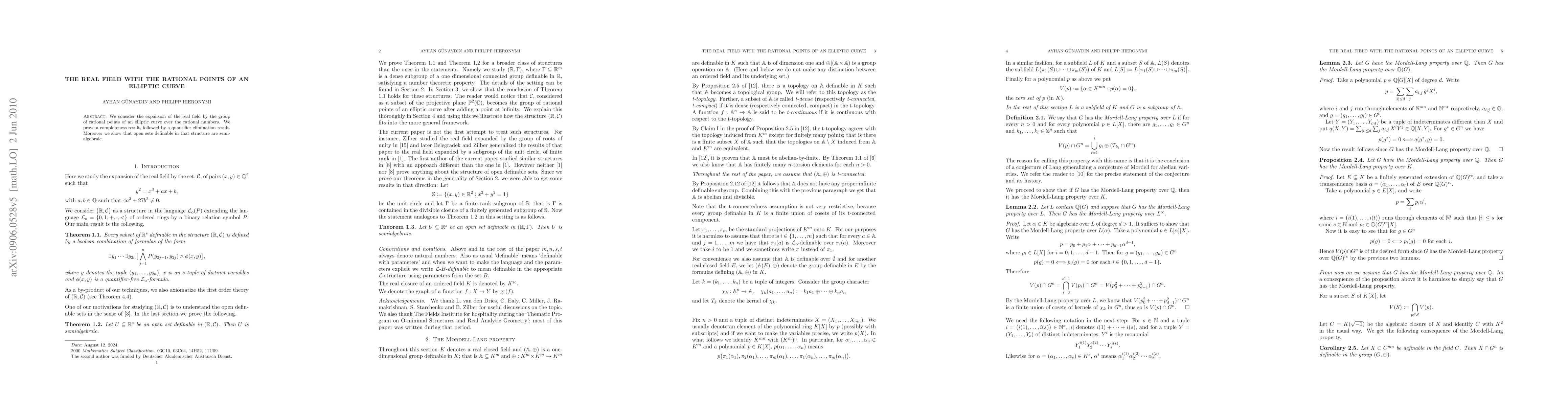 This paper expands the real field by incorporating the rational points of an elliptic curve over rational numbers, proving its completeness and quantifier elimination. It also demonstrates that open sets in this structure are semialgebraic.