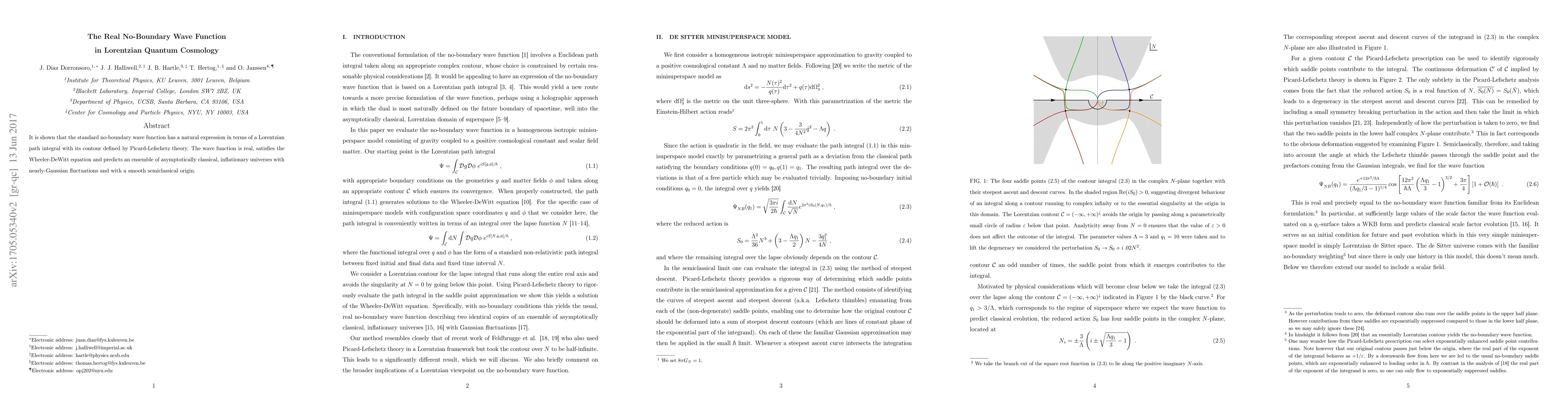 It is shown that the standard no-boundary wave function has a natural expression in terms of a Lorentzian path integral with its contour defined by Picard-Lefschetz theory. The wave function is real, satisfies the Wheeler-DeWitt equation and predicts an ensemble of asymptotically classical, inflationary universes with nearly-Gaussian fluctuations and with a smooth semiclassical origin.