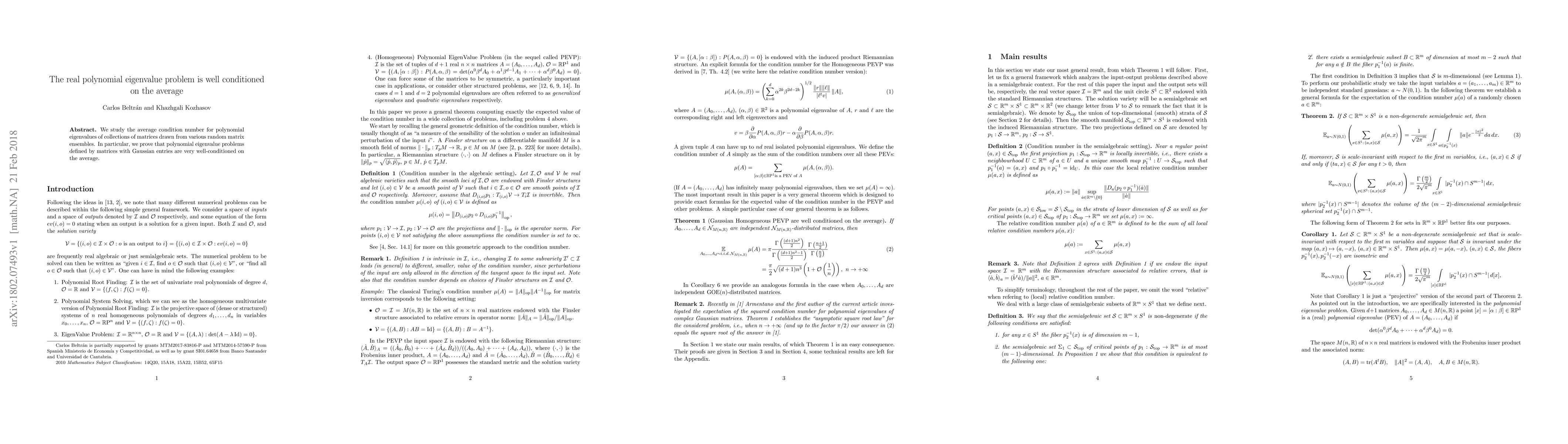 This research finds that polynomial eigenvalue problems defined by matrices with Gaussian entries are well-conditioned on average. The study aims to improve numerical stability for solving large-scale linear systems.