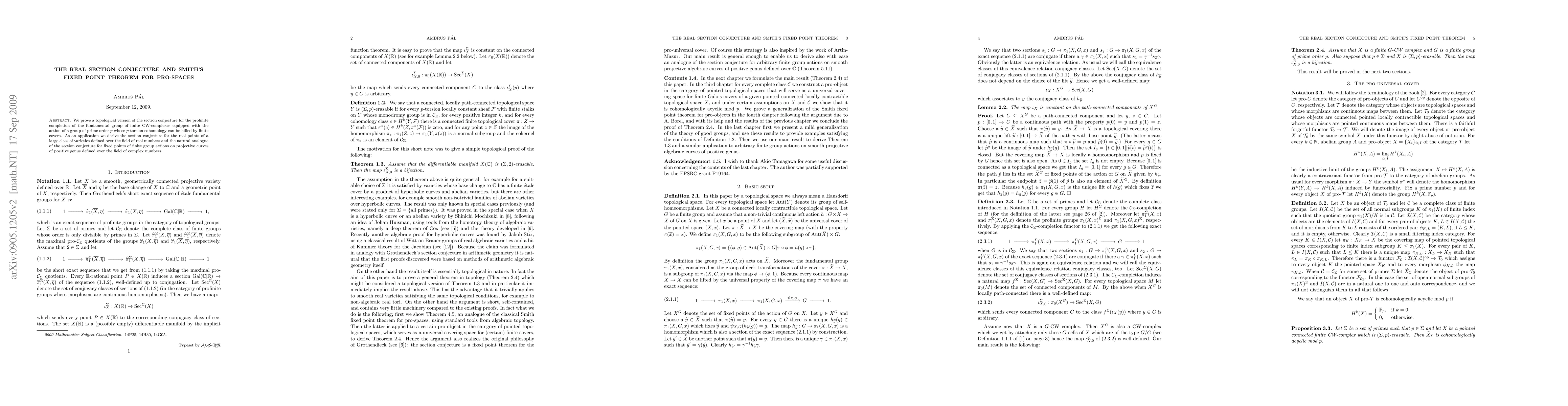 The paper proves a topological version of the section conjecture for the profinite completion of the fundamental group of finite CW-complexes under specific group actions, and applies this to derive the section conjecture for real points of certain varieties and fixed points on projective curves.