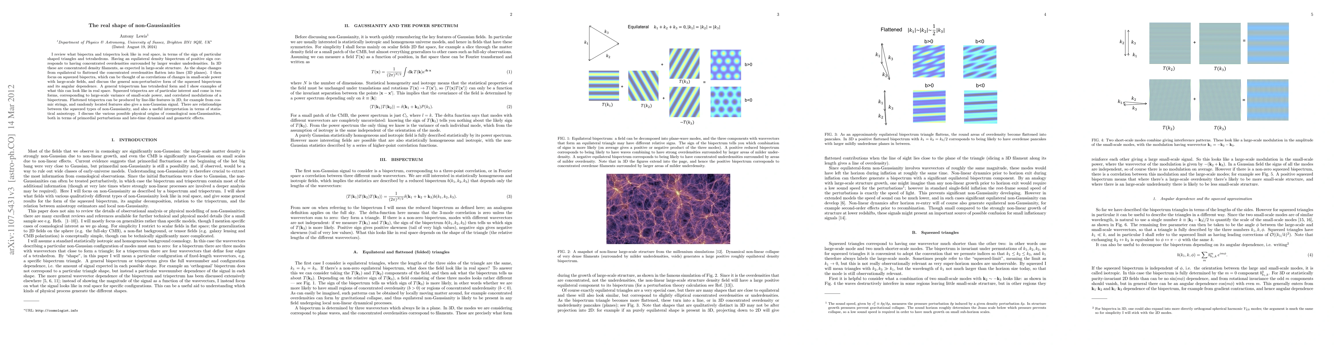 I review what bispectra and trispectra look like in real space, in terms of the sign of particular shaped triangles and tetrahedrons. Having an equilateral density bispectrum of positive sign corresponds to having concentrated overdensities surrounded by larger weaker underdensities. In 3D these are concentrated density filaments, as expected in large-scale structure. As the shape changes from equilateral to flattened the concentrated overdensities flatten into lines (3D planes). I then focus on squeezed bispectra, which can be thought of as correlations of changes in small-scale power with large-scale fields, and discuss the general non-perturbative form of the squeezed bispectrum and its angular dependence. A general trispectrum has tetrahedral form and I show examples of what this can look like in real space. Squeezed trispectra are of particular interest and come in two forms, corresponding to large-scale variance of small-scale power, and correlated modulations of an equilateral-form bispectrum. Flattened trispectra can be produced by line-like features in 2D, for example from cosmic strings, and randomly located features also give a non-Gaussian signal. There are relationships between the squeezed types of non-Gaussianity, and also a useful interpretation in terms of statistical anisotropy. I discuss the various possible physical origins of cosmological non-Gaussianities, both in terms of primordial perturbations and late-time dynamical and geometric effects.